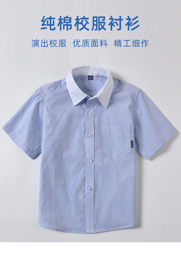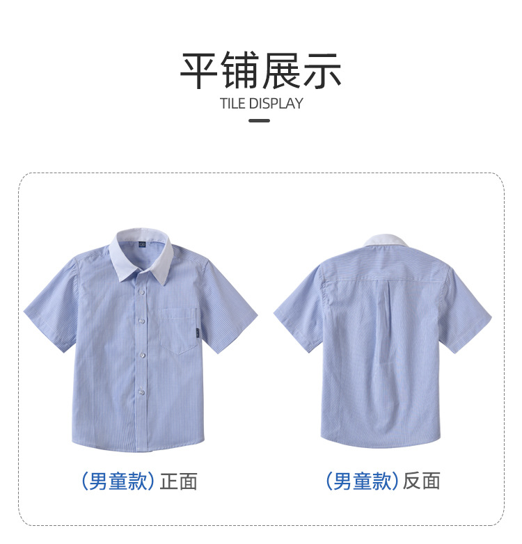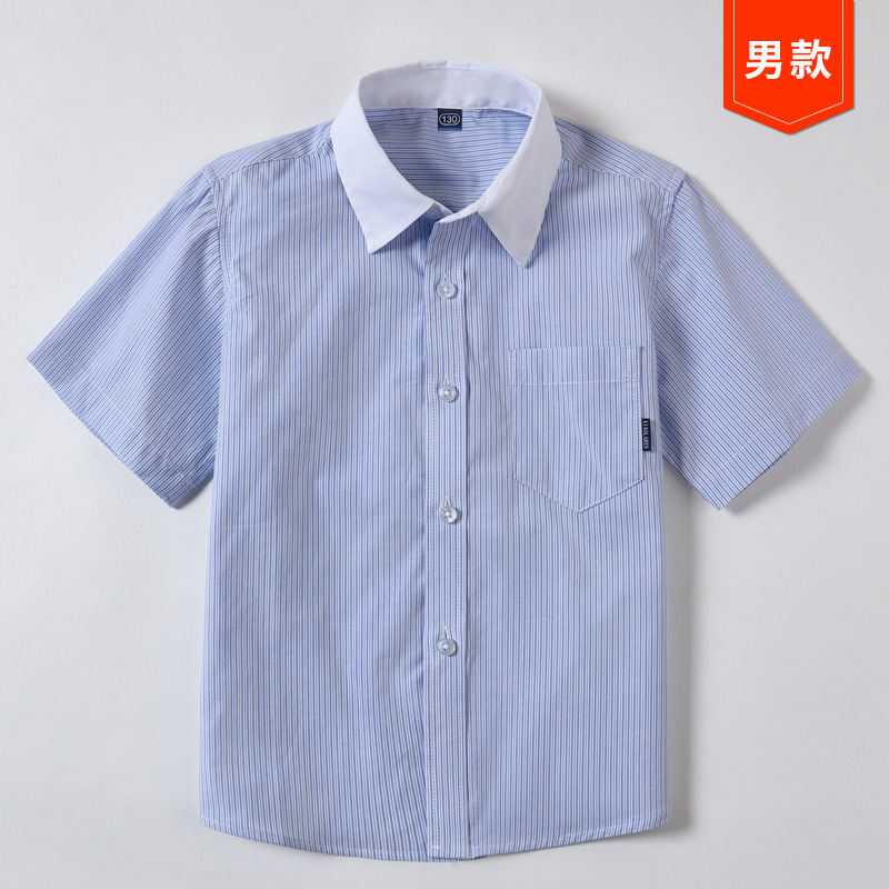 아동용 반팔 블루 셔츠 남아 여름 얇은 스트라이프 셔츠 중간 및 큰 어린이 공연 의류 초등학생 순면 교복스토어 가기