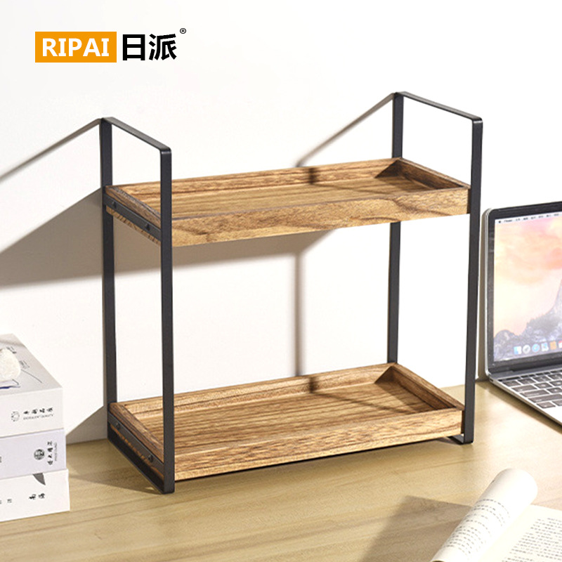 나무 더블 레이어 스토리지 랙 주방 욕실 거실 수조 마무리 랙 화장품 간식 조미료 스토리지 랙 사용자 정의스토어 가기