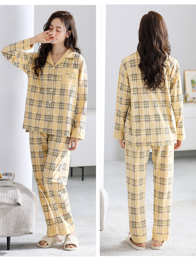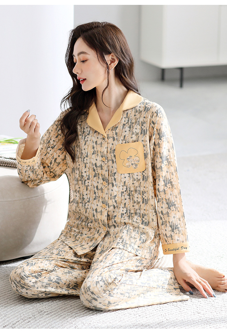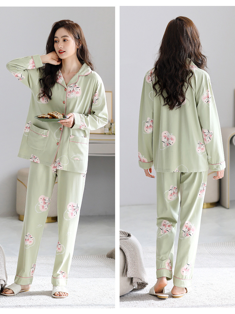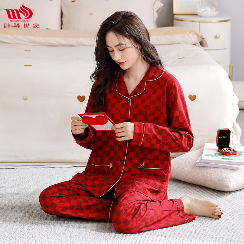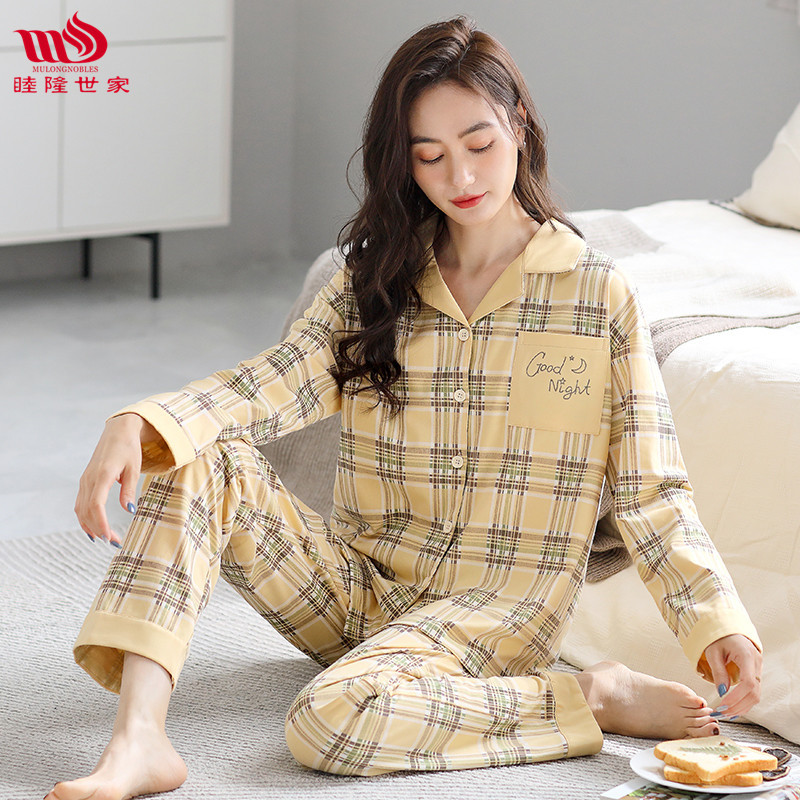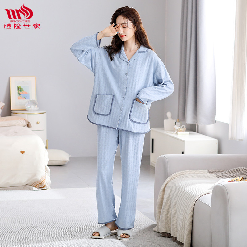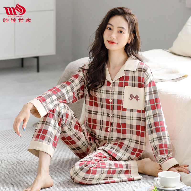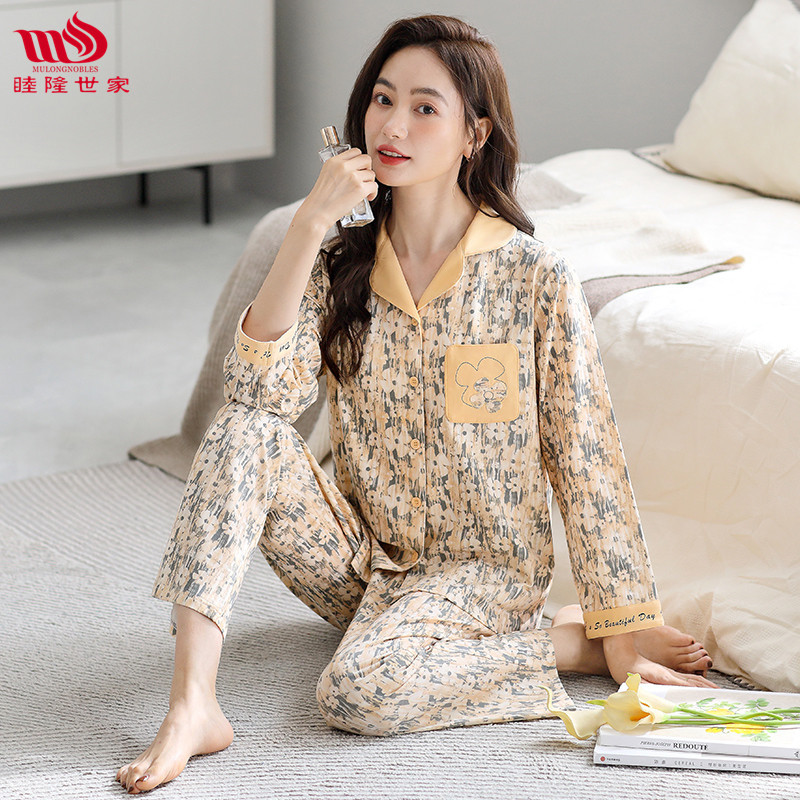 물롱 귀족 순면 잠옷 여성 봄과 가을 긴 소매 한국 스타일 우아한 느슨한 대형 가을 홈 세트스토어 가기