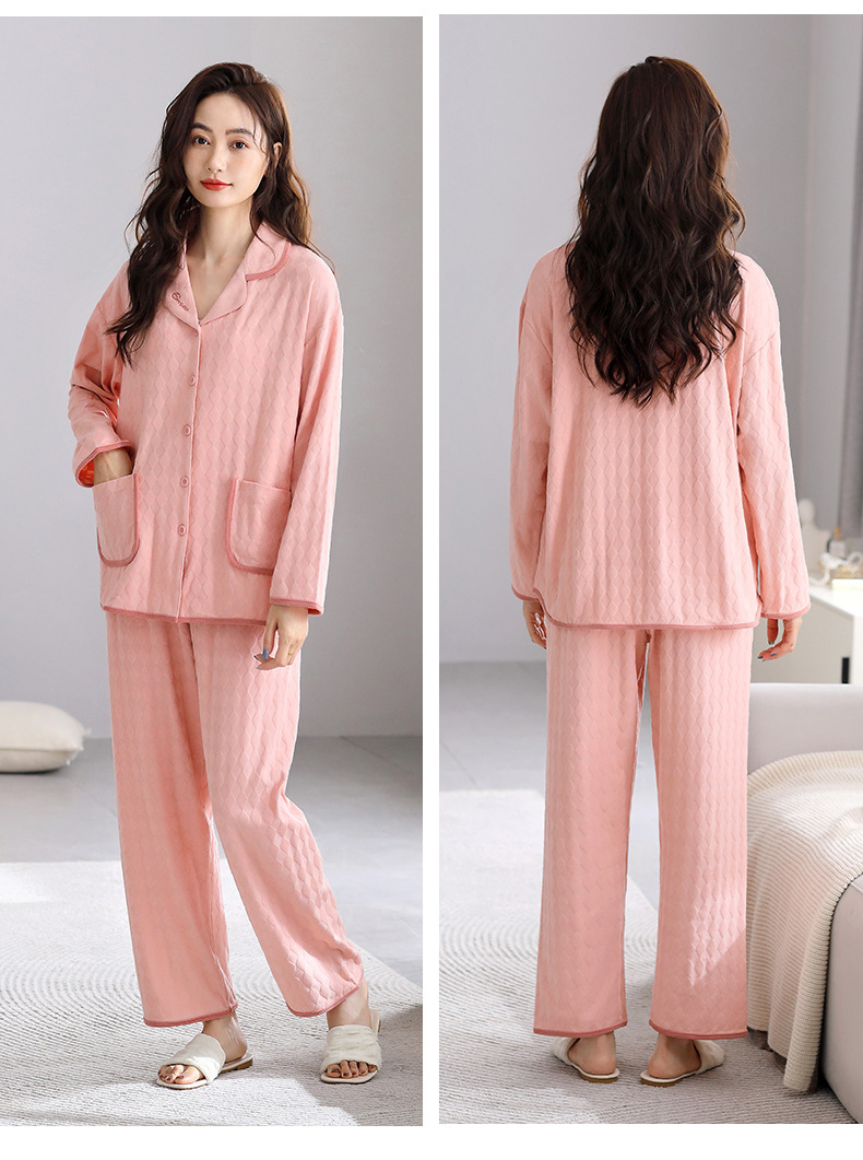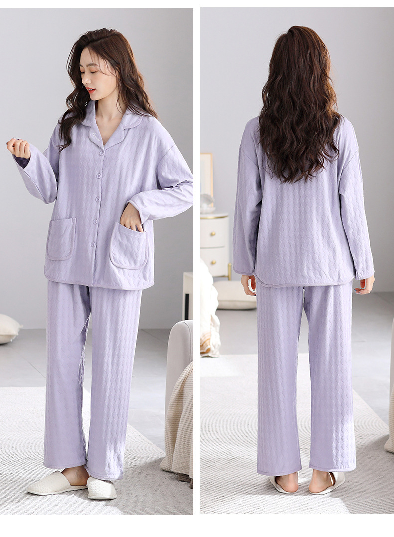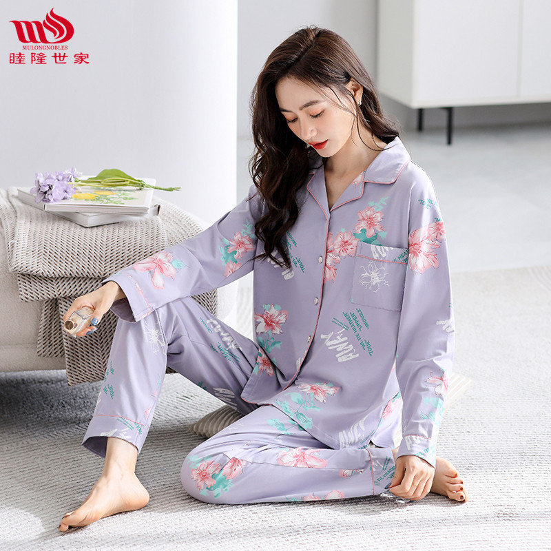 물롱 귀족 순면 잠옷 여성 봄과 가을 긴 소매 한국 스타일 우아한 느슨한 대형 가을 홈 세트