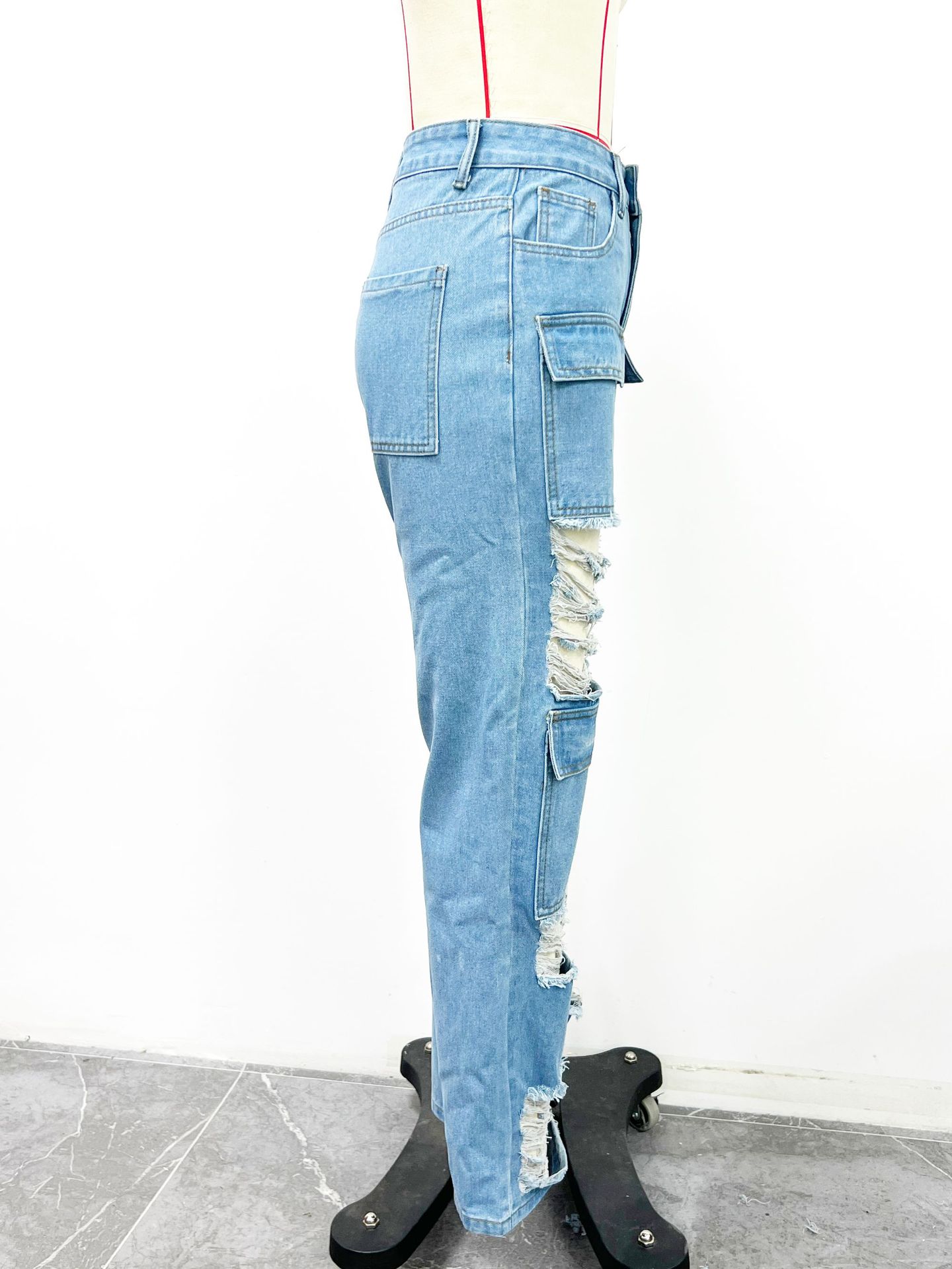 스트리트 캐주얼 찢어진 청바지 2023 새로운 필통 스트레이트 하이 웨이스트 와이드 레그 스트레이트 팬츠 공장 콘센트스토어 가기