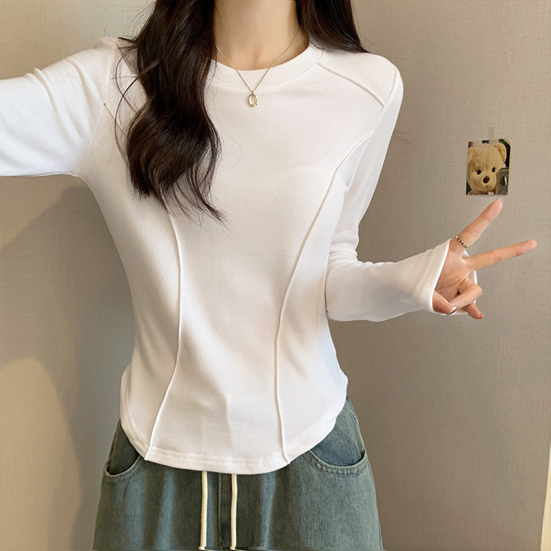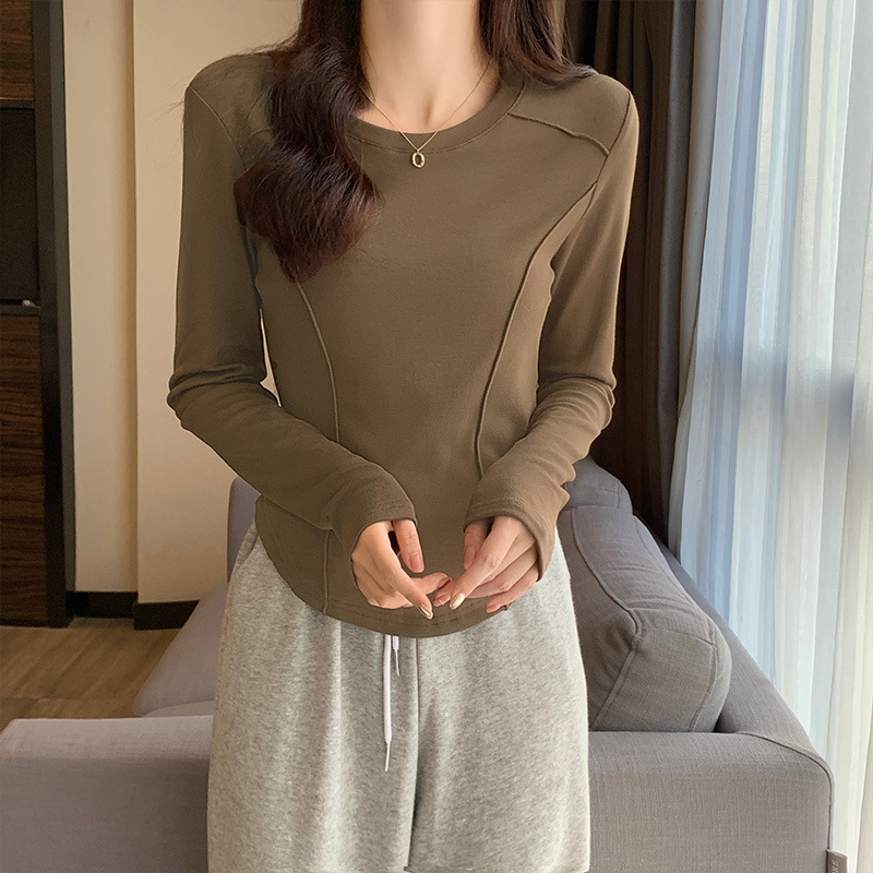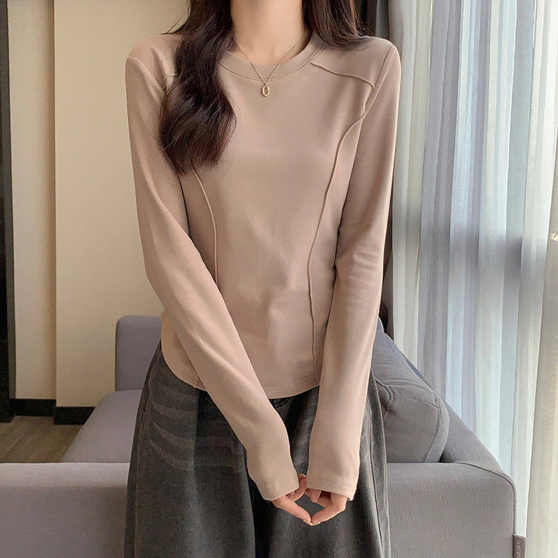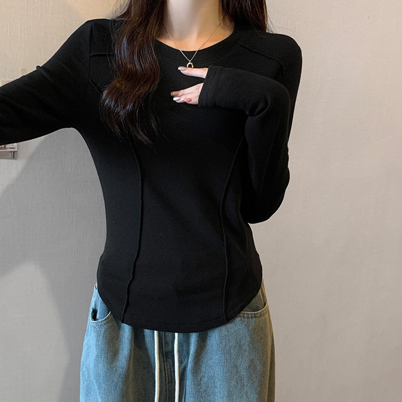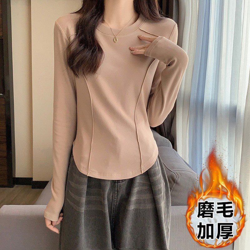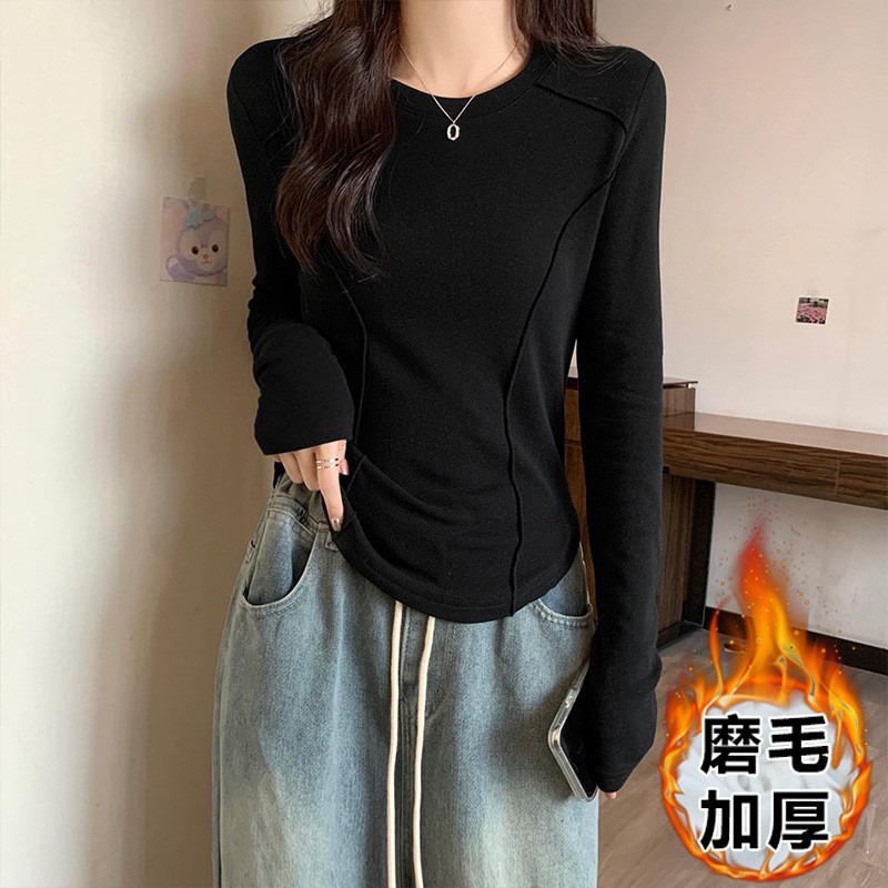 벨벳 안감 두꺼운 가을 겨울 여성용 티셔츠, 슬림핏, 우아하고 날씬해 보이는 긴팔, 피쉬본 디자인, 다용도, 정형 어깨라인 탑스토어 가기