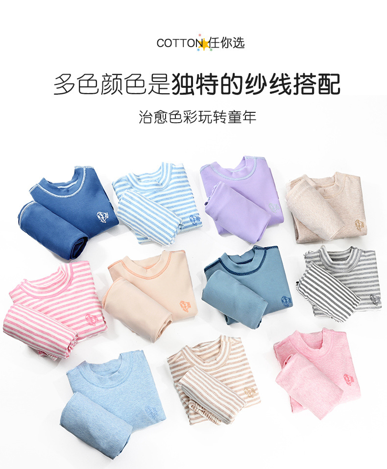 Boneless Shvelvet 컬러 면 어린이 속옷 세트 소년과 소녀 순면 홈 신축성베이스 따뜻한 가을 옷과 바지