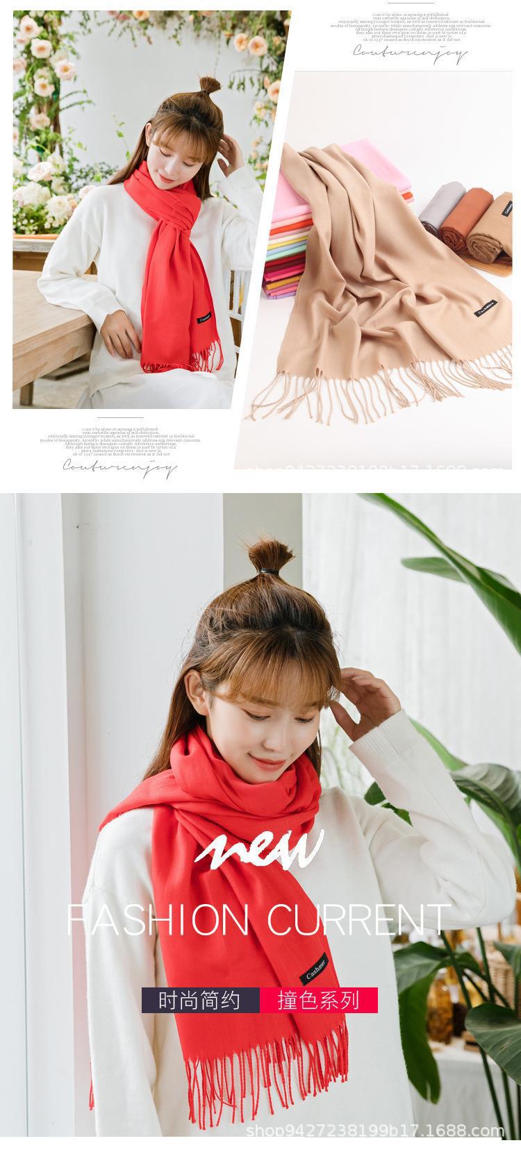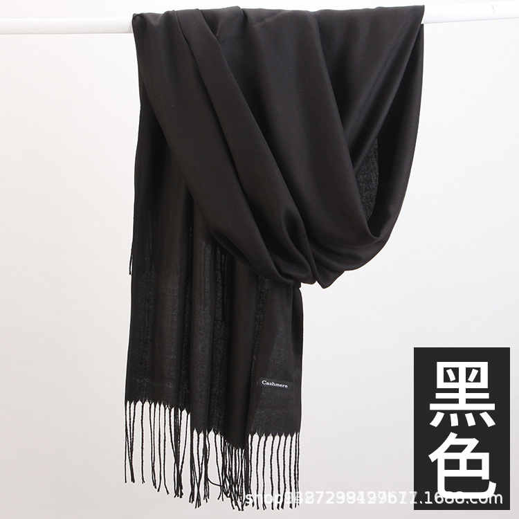 캐시미어 스카프 따뜻한 겨울 커플 솔리드 컬러 모조 캐시미어 스카프 긴 술 하이 센스 흑백 목도리 느낌