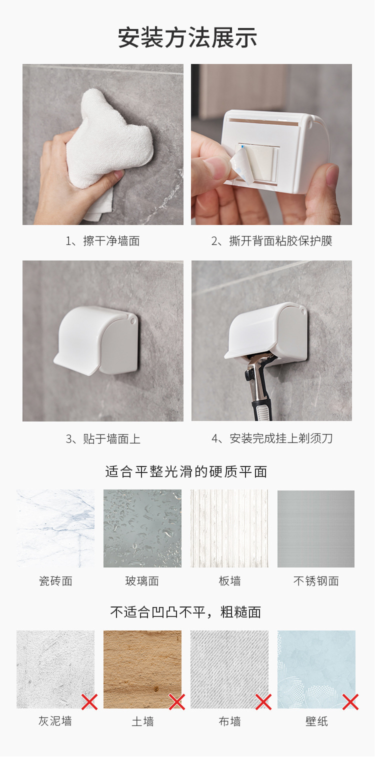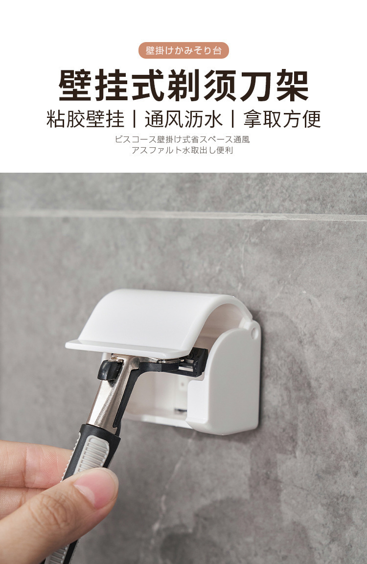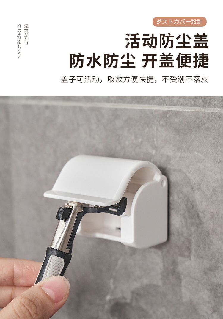 면도기 후크 강력한 접착 벽걸이 랙 화장실 수동 면도기 뚜껑이있는 벽 보관 랙