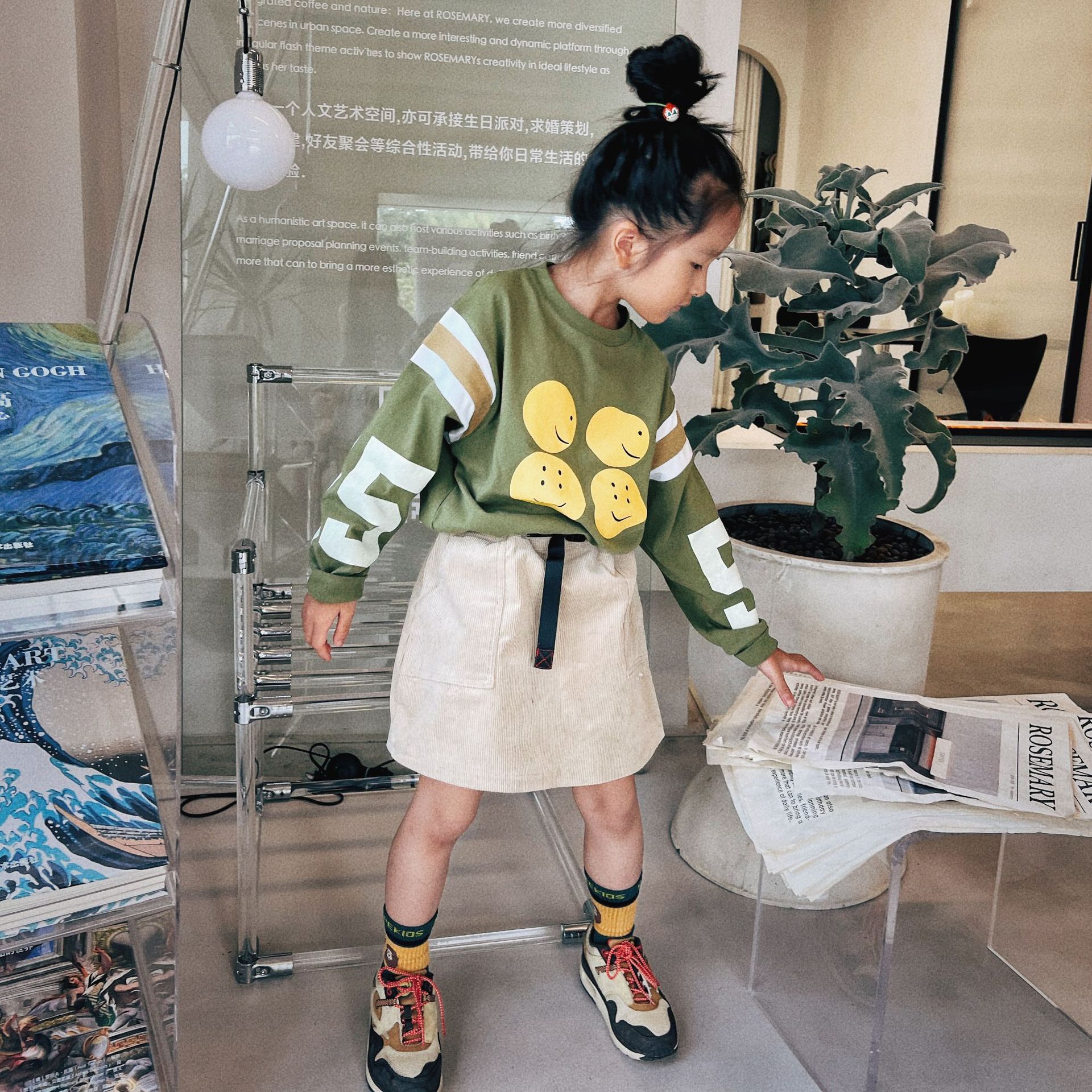 23AW 새로운 소녀 일본 A 자형 스커트 코듀로이 툴링 부모-자식 스커트 재고스토어 가기