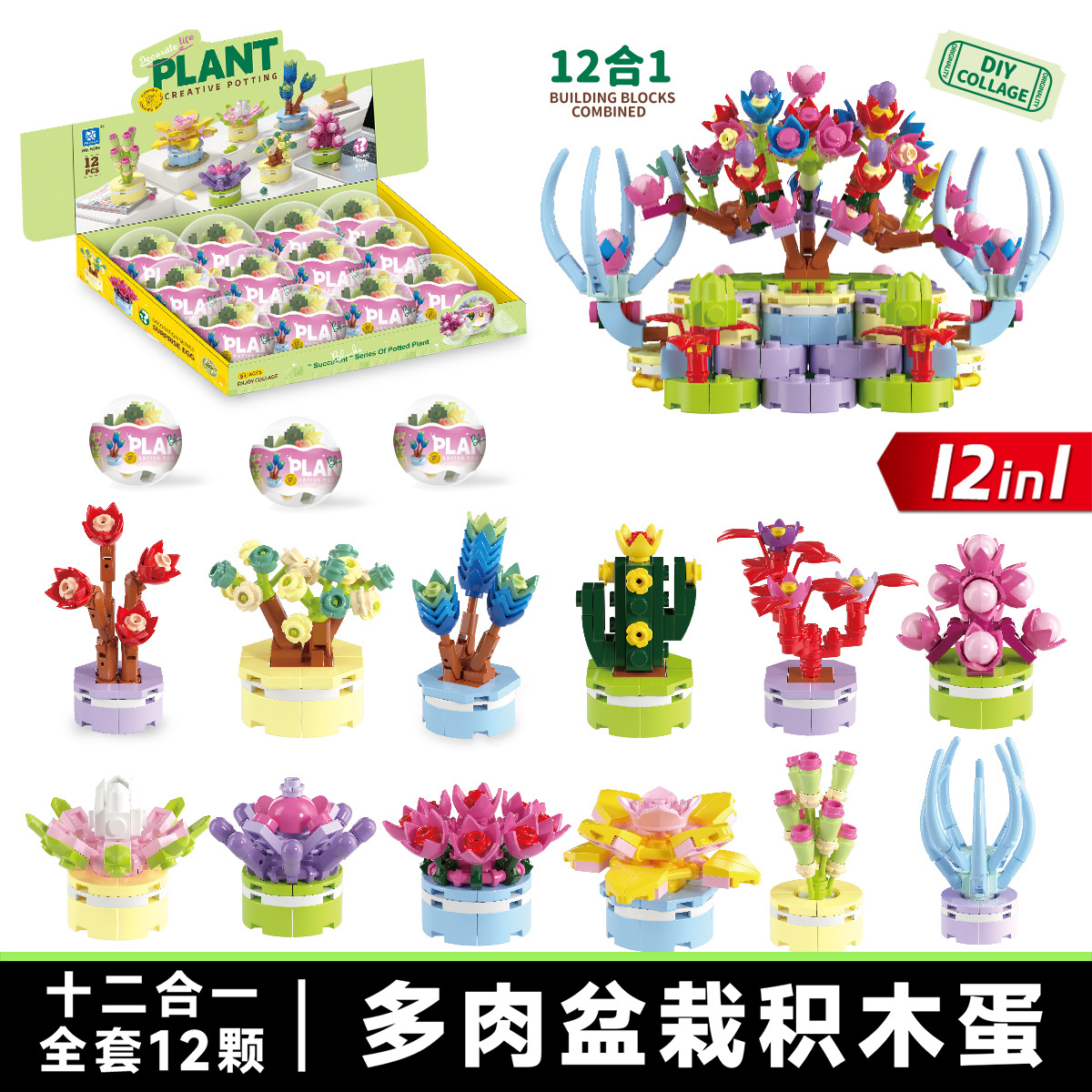 K58-多肉盆栽扭蛋(一彩盒是12个,12个款式,1款一个,可合拼)
