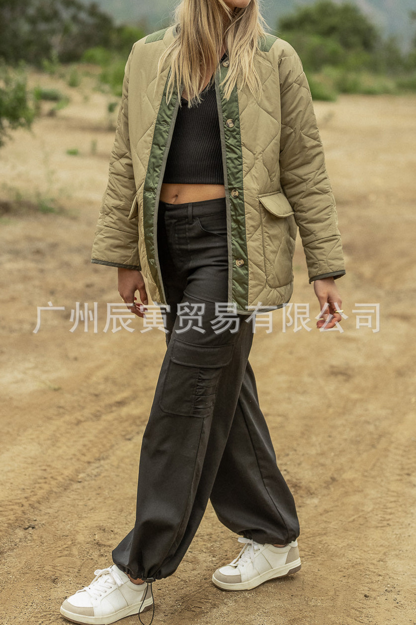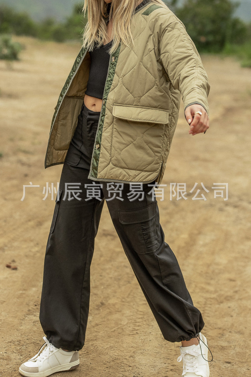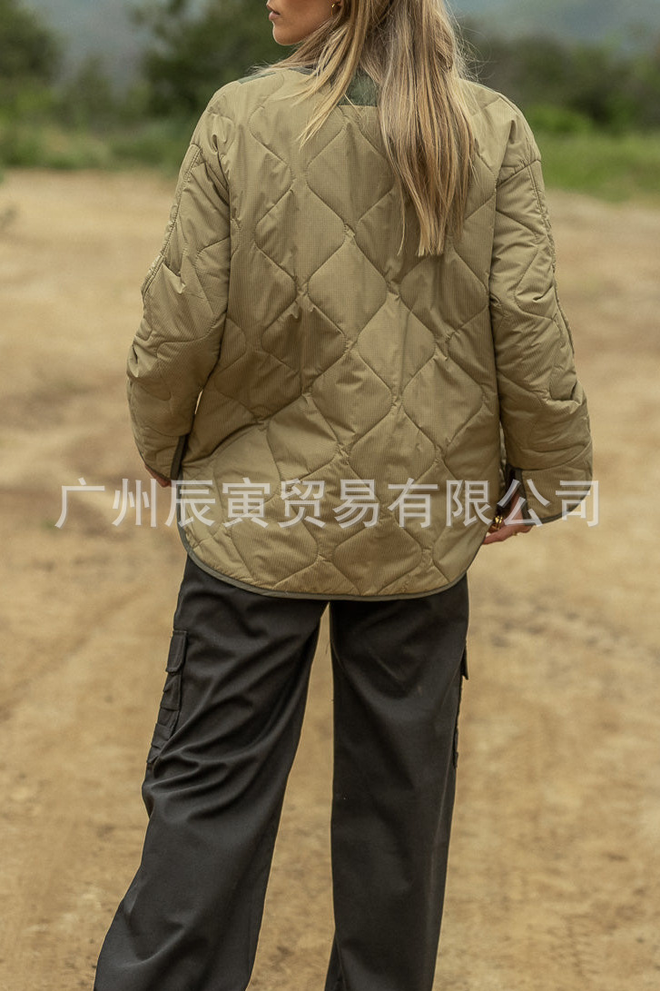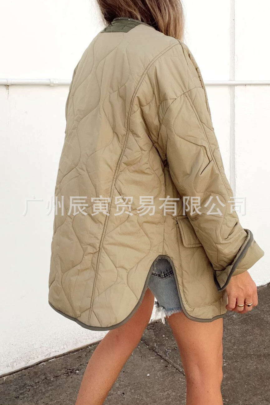 새로운 유럽 및 미국 여성 가을 겨울 코트-느슨한 모래 시계 퀼트 코튼 더블 패치 포켓 재킷스토어 가기
