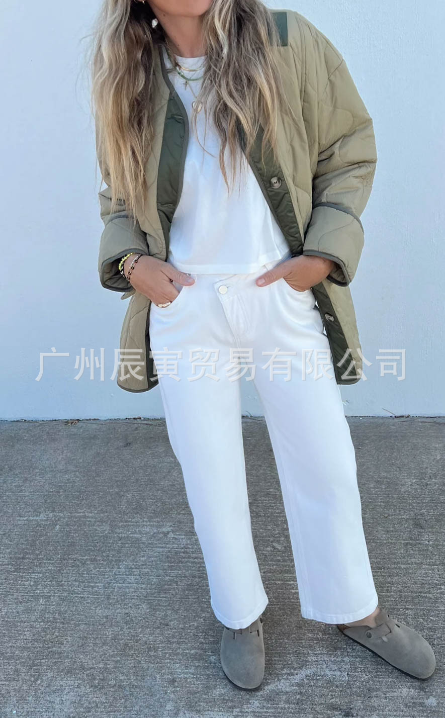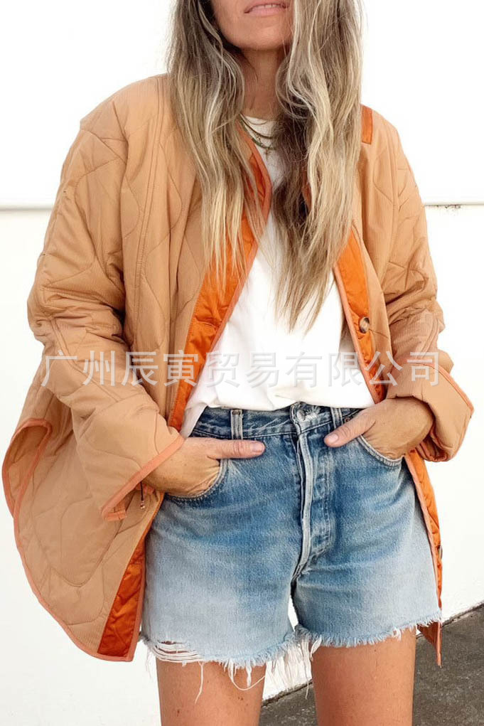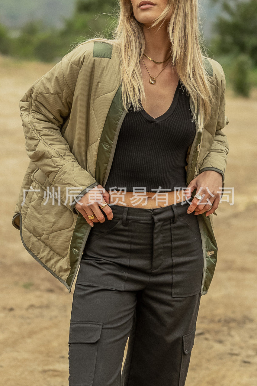 새로운 유럽 및 미국 여성 가을 겨울 코트-느슨한 모래 시계 퀼트 코튼 더블 패치 포켓 재킷스토어 가기