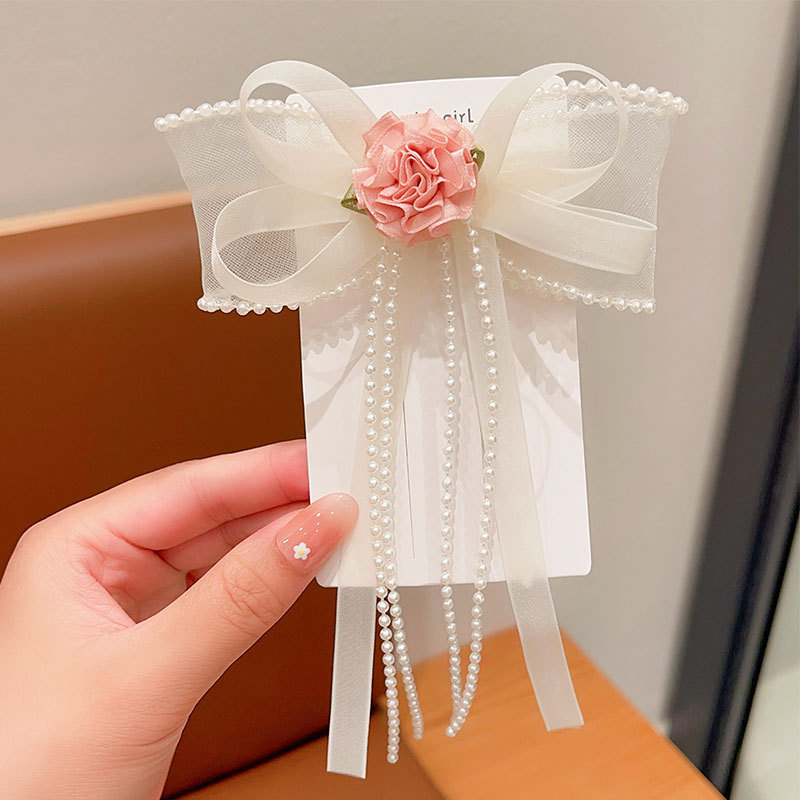 어린이 진주 꽃 머리핀 헤어 액세서리 모리 활 슈퍼 요정 머리핀 소녀 메쉬 우아한 요정 모자