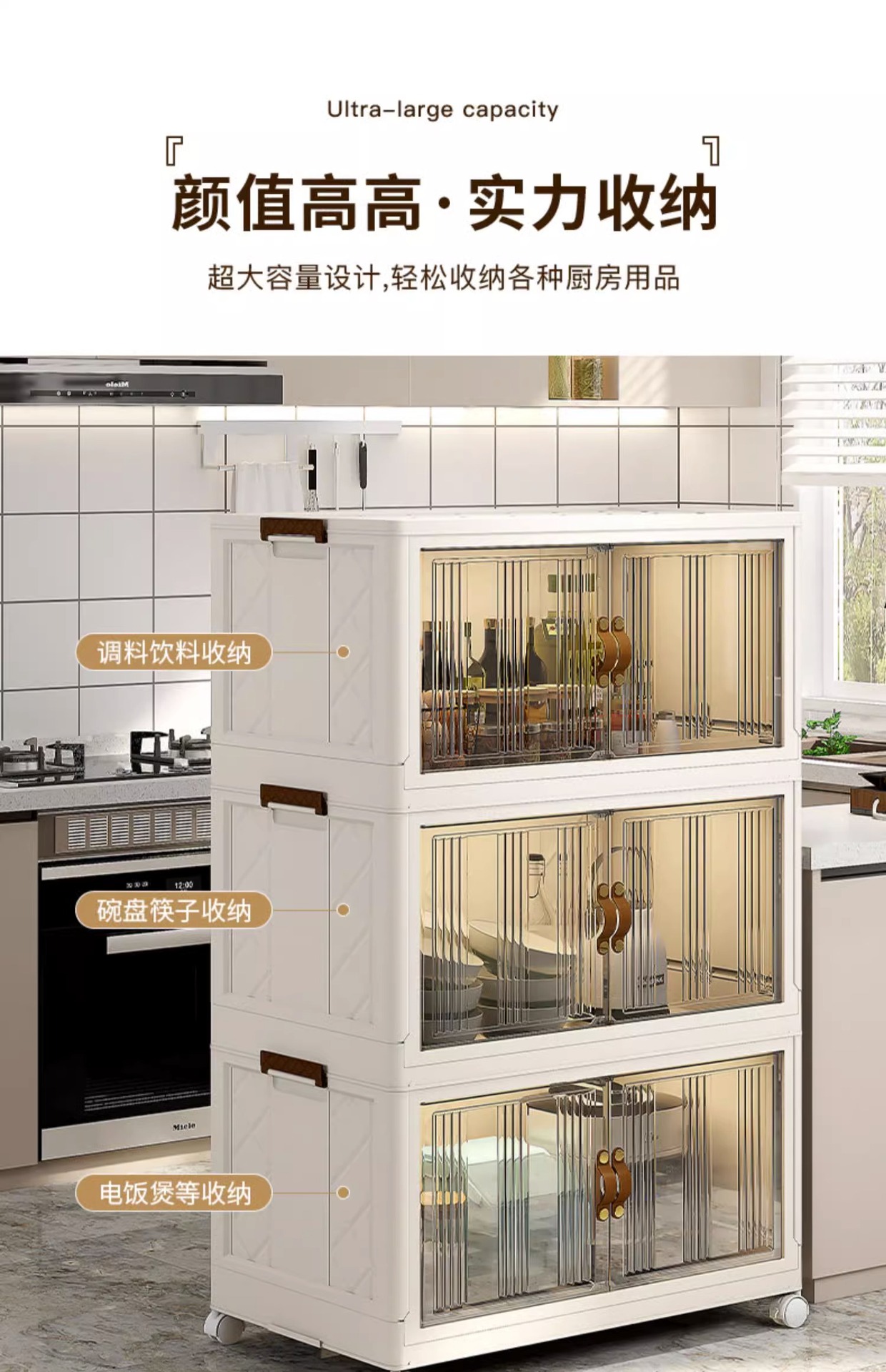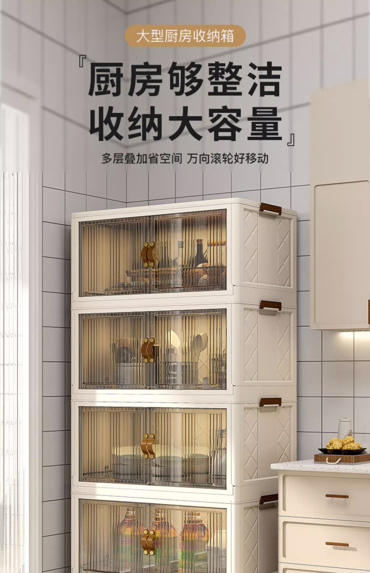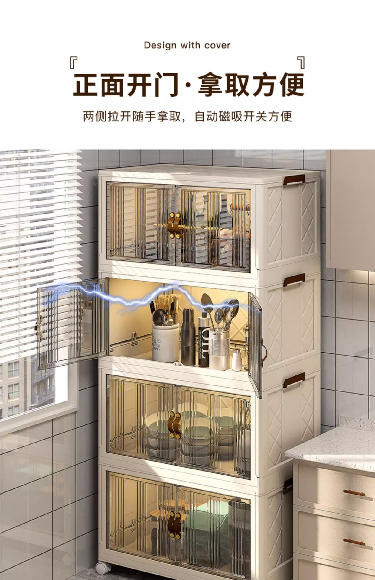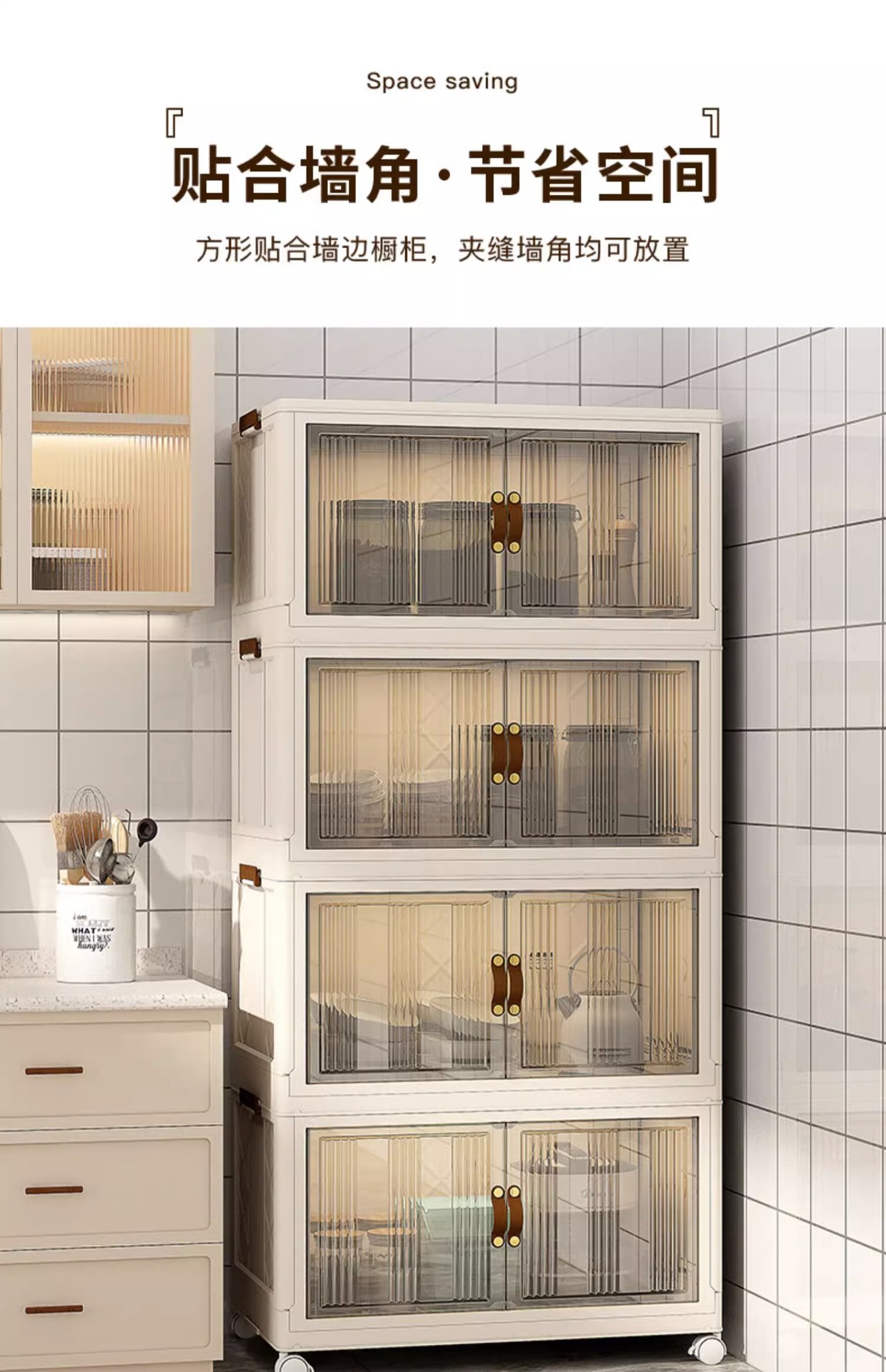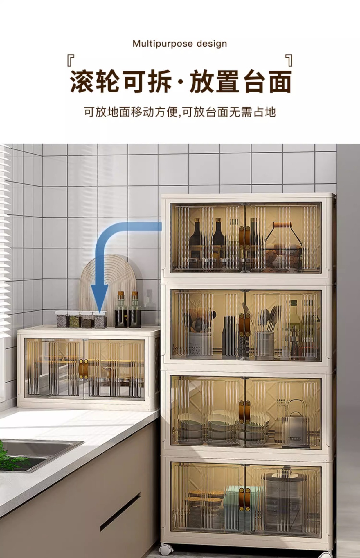 주방 수납 랙 수납 캐비닛 설치 무료 다층 캐비닛 도어 다기능 접시 냄비 가전 보관 캐비닛스토어 가기
