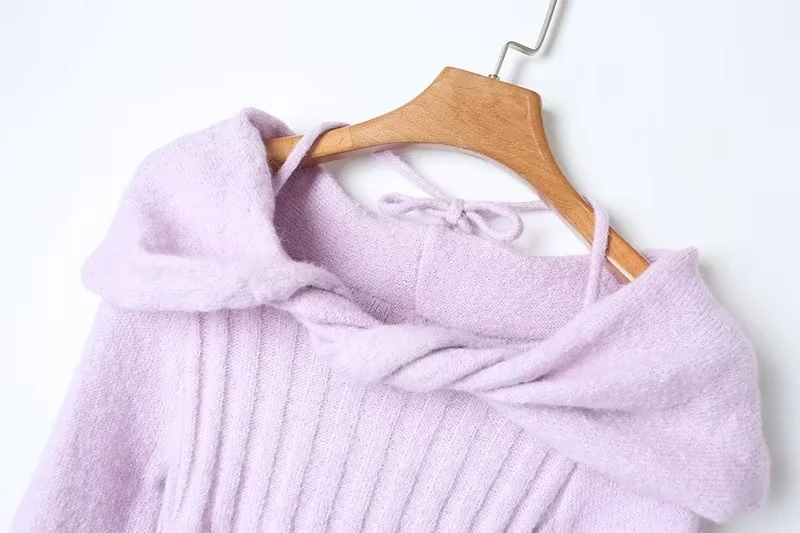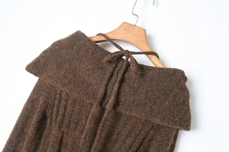 순수한 욕망 스타일 꼬임 오프 숄더 넥 니트 스웨터 가을 새로운 슬림 핏 트럼펫 슬리브 향신료 소녀 풀오버 스웨터스토어 가기
