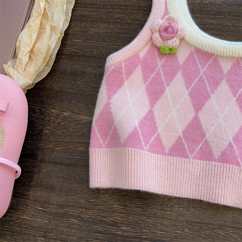 어린이 니트 조끼 봄과 가을 복장 아기 스웨터 조끼 가을 소녀 가을 휘슬 스트랩 조끼