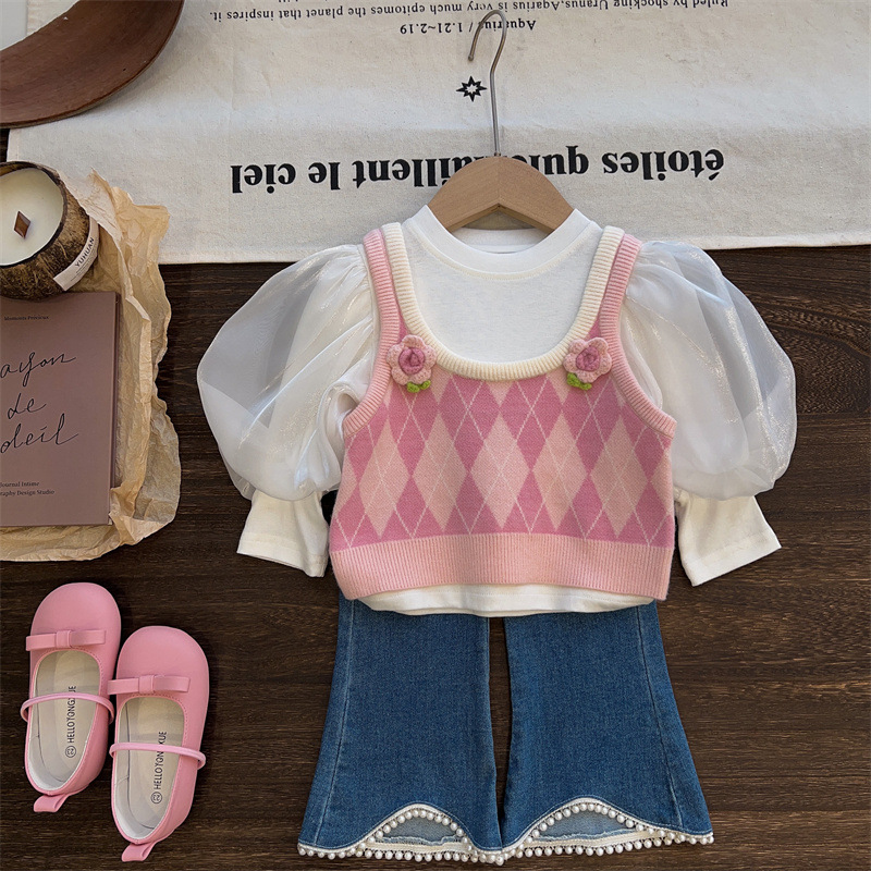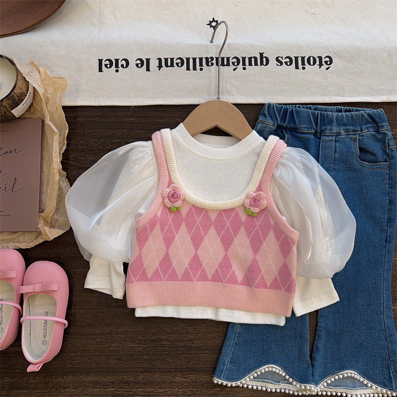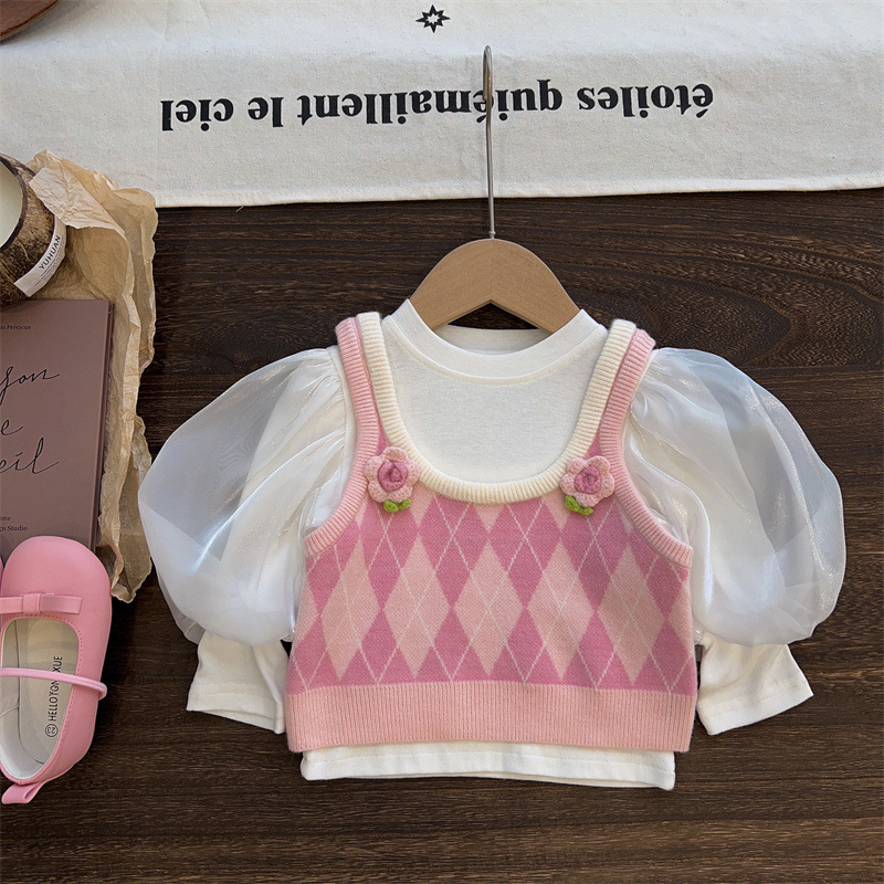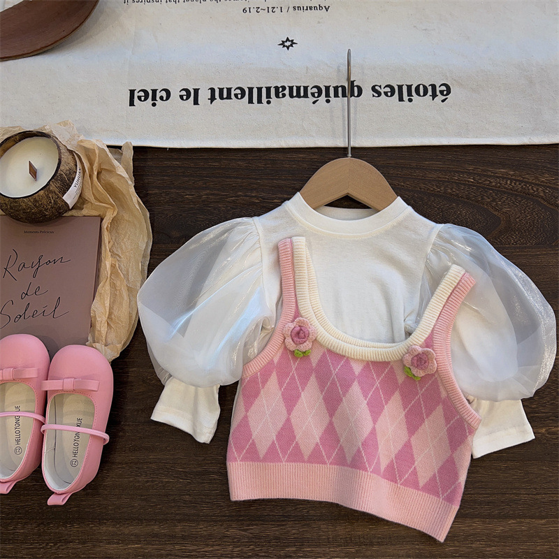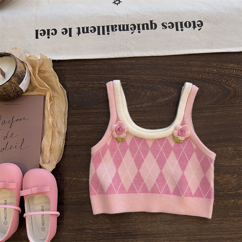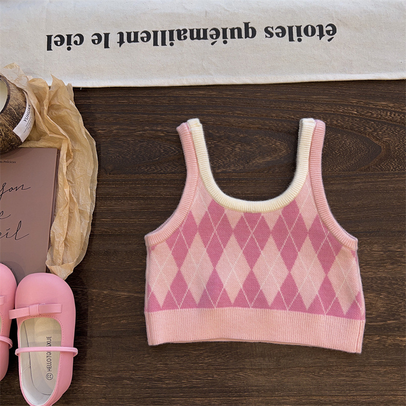 어린이 니트 조끼 봄과 가을 복장 아기 스웨터 조끼 가을 소녀 가을 휘슬 스트랩 조끼스토어 가기