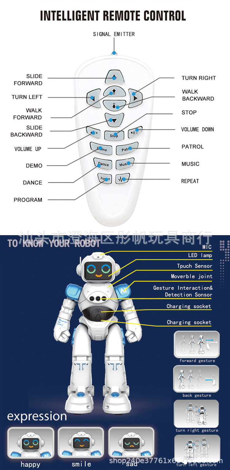 국경 간 지능형 로봇 음성 대화 표현 변경 제스처 유도 첨단 원격 제어 프로그래밍 어린이 장난감스토어 가기