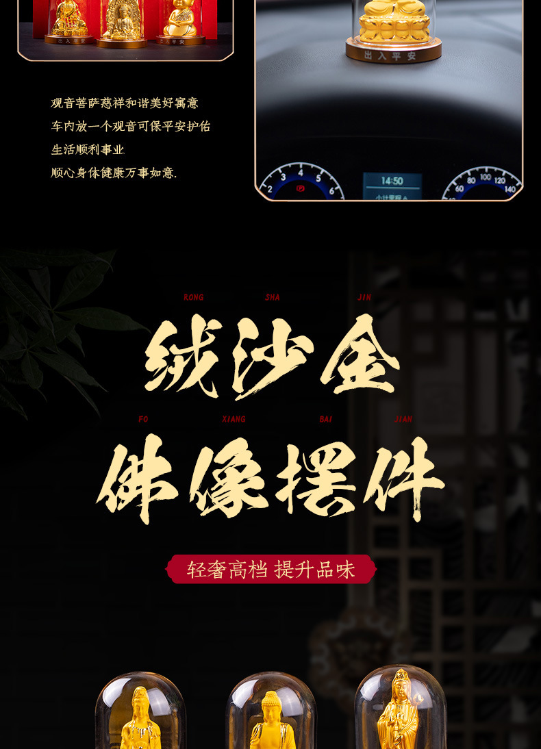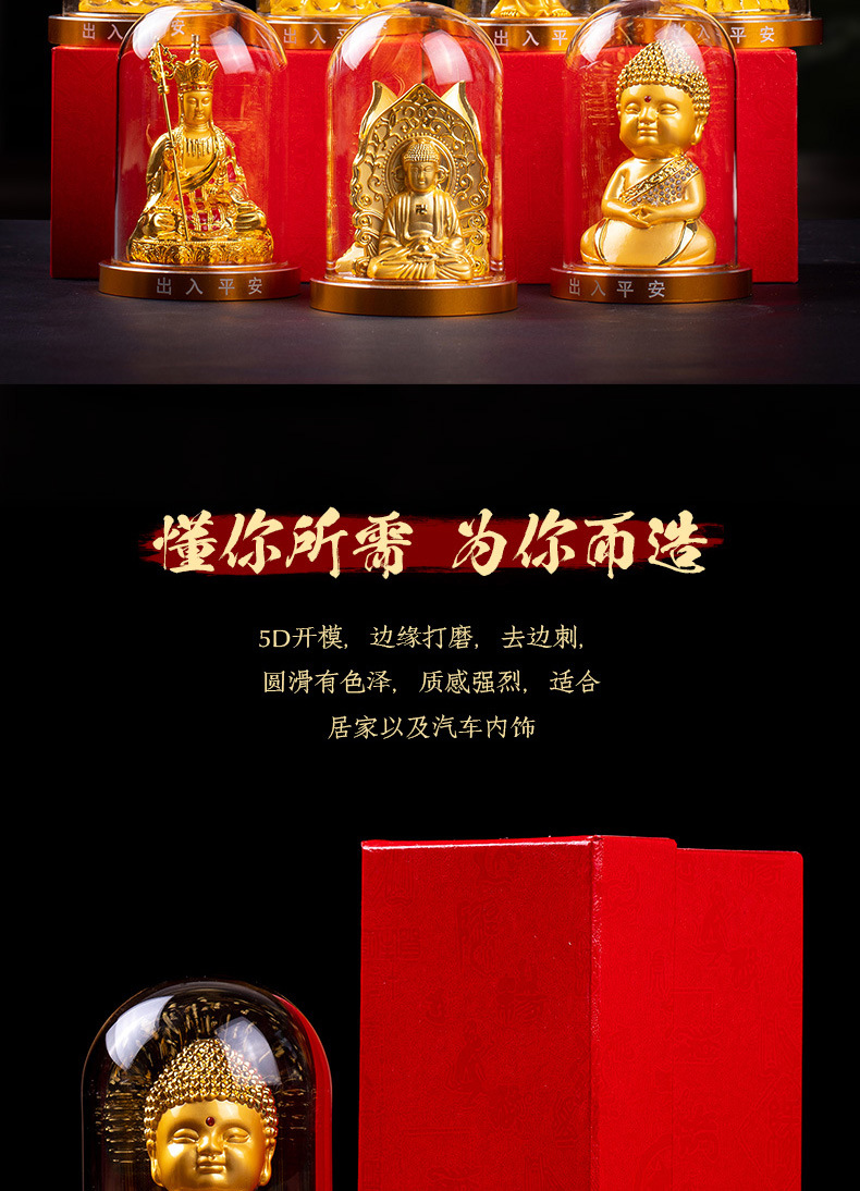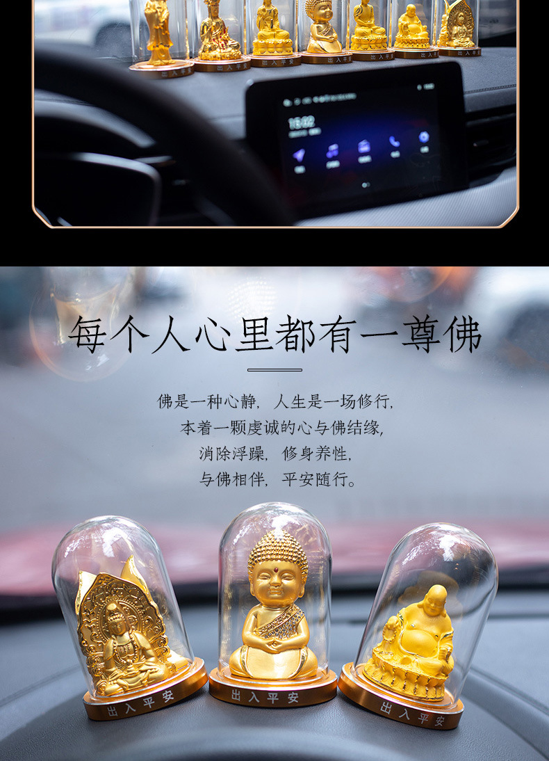 여덟 보호신 고급 자동차 장식품 벨벳 샌드 골드 불상 자동차 인테리어 장식품 창의적인 다양한 자동차 장식