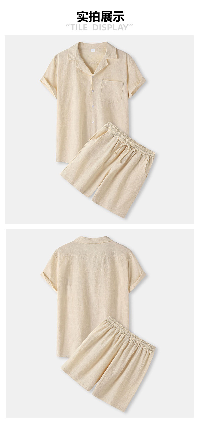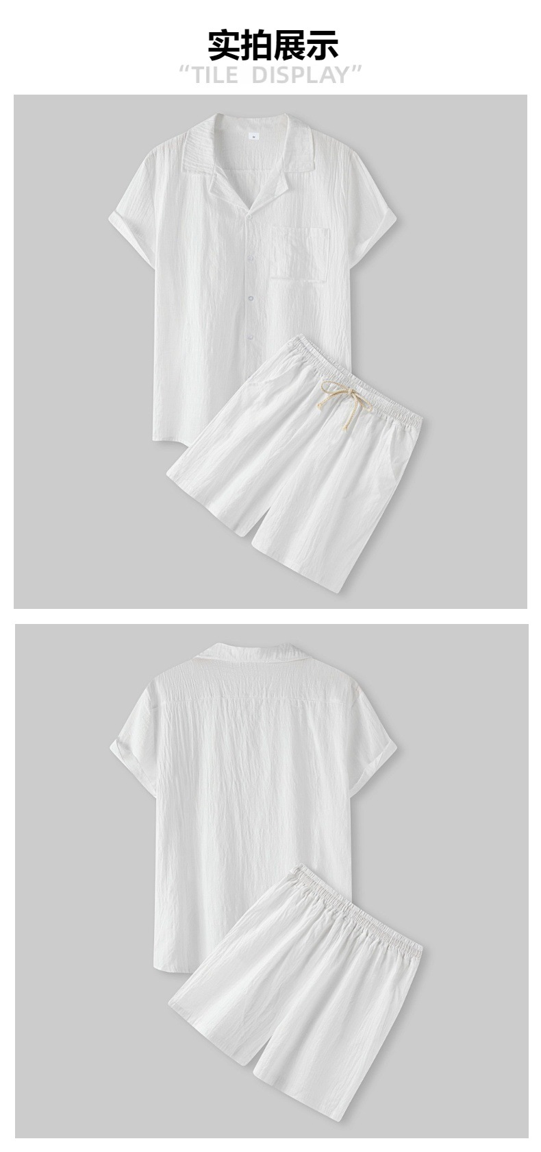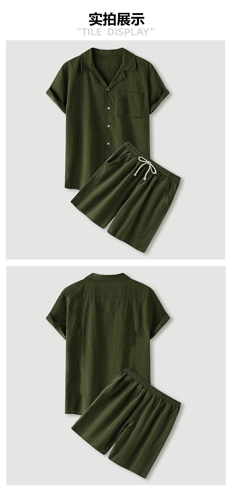 아마존 크로스 보더 남성 코튼 솔리드 컬러 하와이 패션 옷깃 반팔 셔츠 반바지 정장 투피스 세트스토어 가기