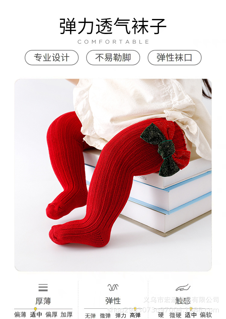 겨울 폭발 두꺼운 바늘 세로 줄무늬 스타킹 두꺼운 스타킹 축제 빨간 새해 면 여아 스타킹