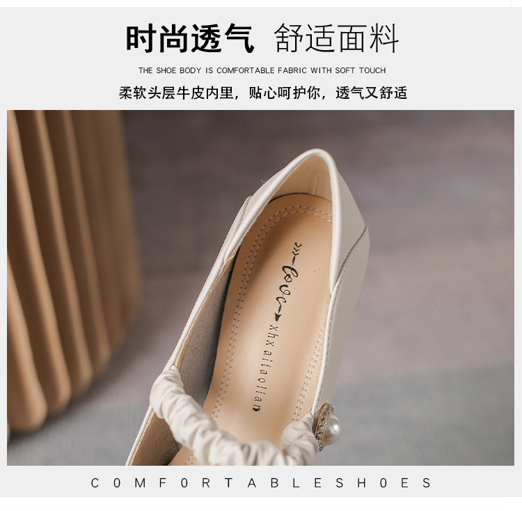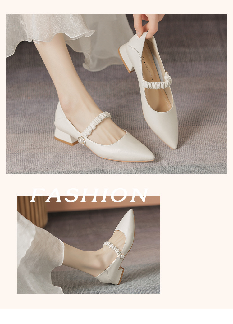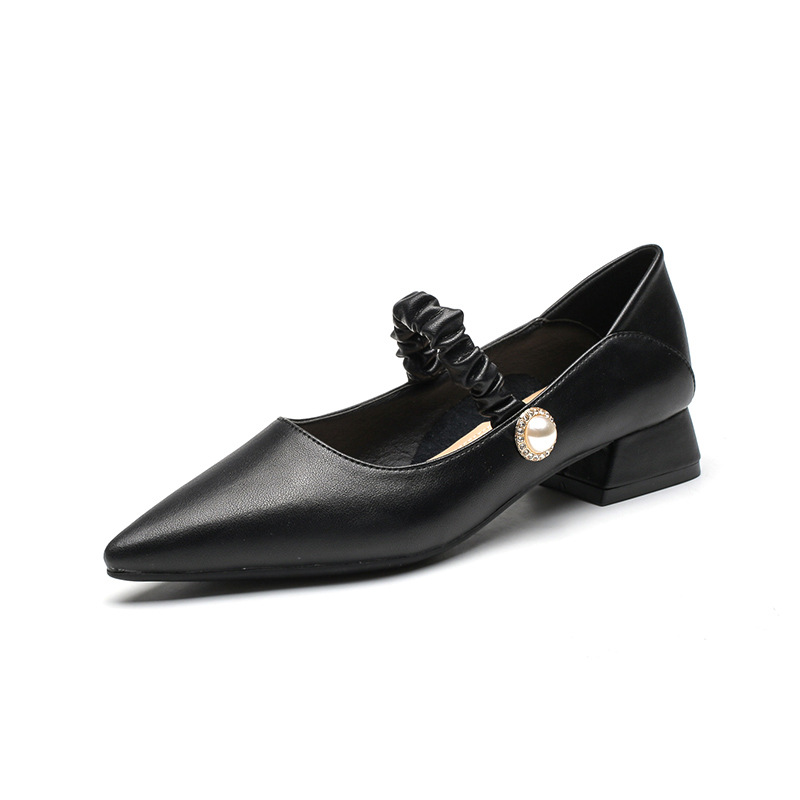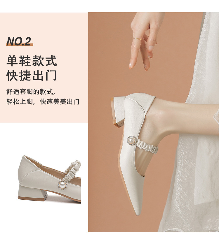 뾰족한 발가락 신발 여성의 2024 봄 새로운 프랑스 올 매치 두꺼운 힐 여성 신발 소프트 가죽 얕은 버클 미드 힐 가을 신발스토어 가기