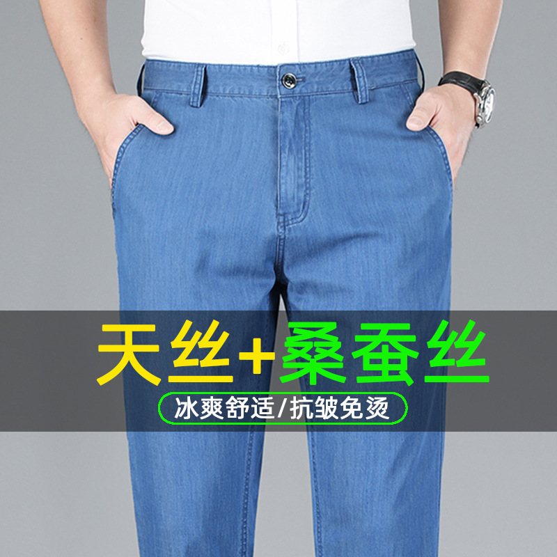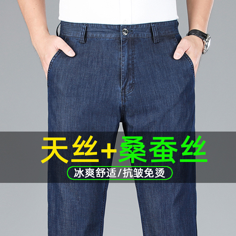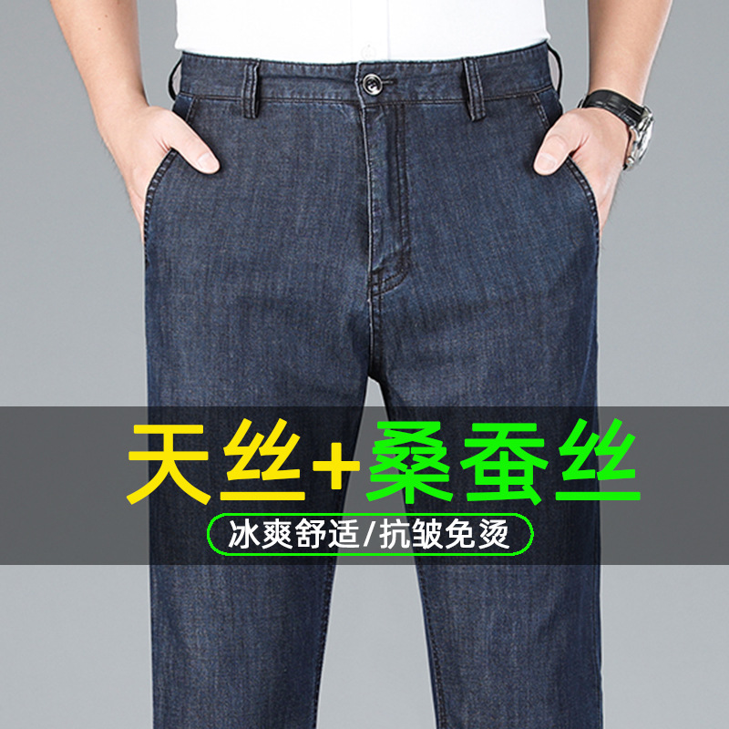 텐셀 중년 청바지 남성용 여름 얇은 스트레이트 느슨한 남성 바지 여름 착용 드레이핑 초박형 아빠의 긴 바지