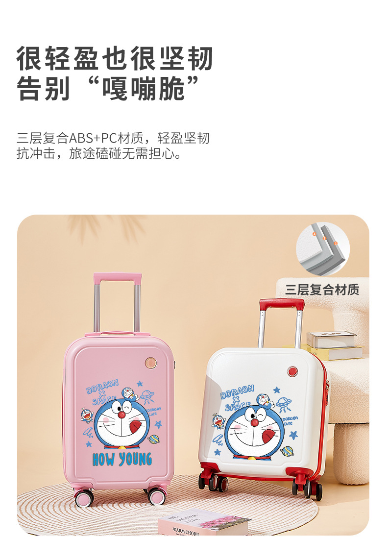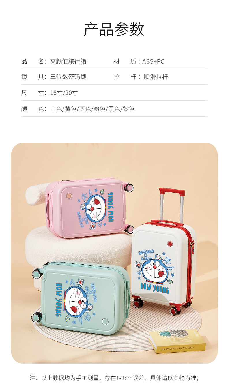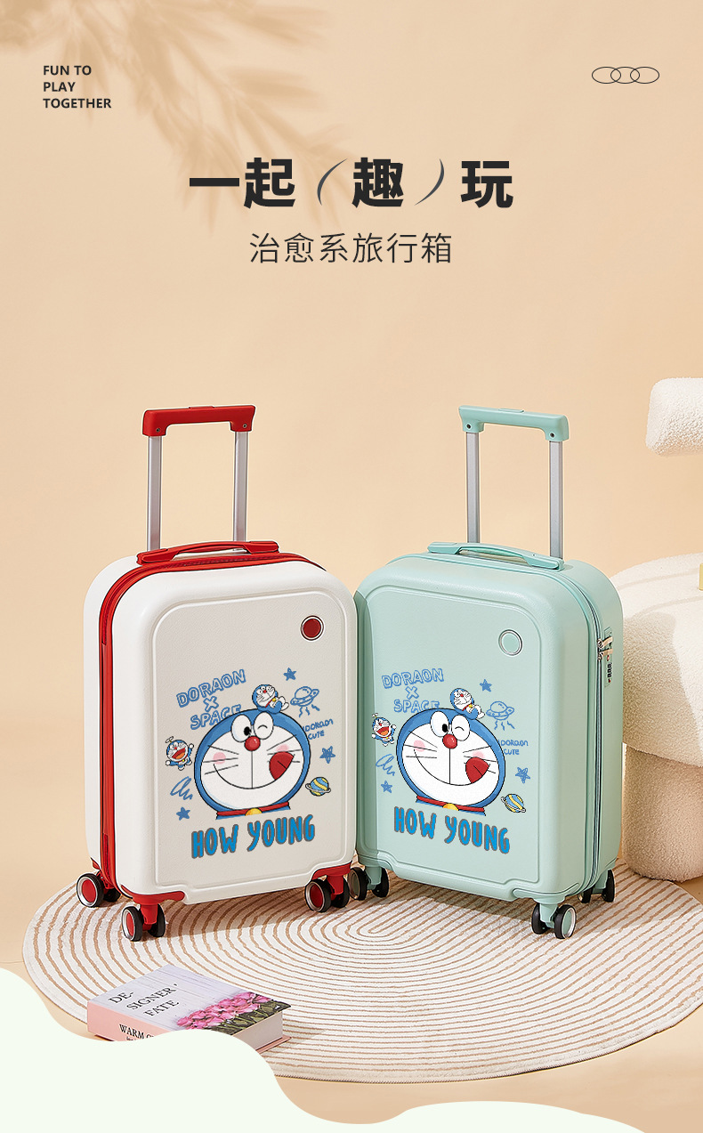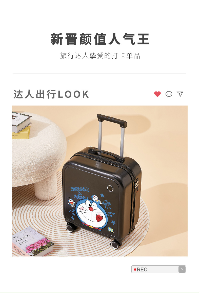 새로운 모델 18/ 20inch 남녀 공용 기내용 여행 가방, 회전식 바퀴와 지퍼가 있는 미니 도라에몽 가방