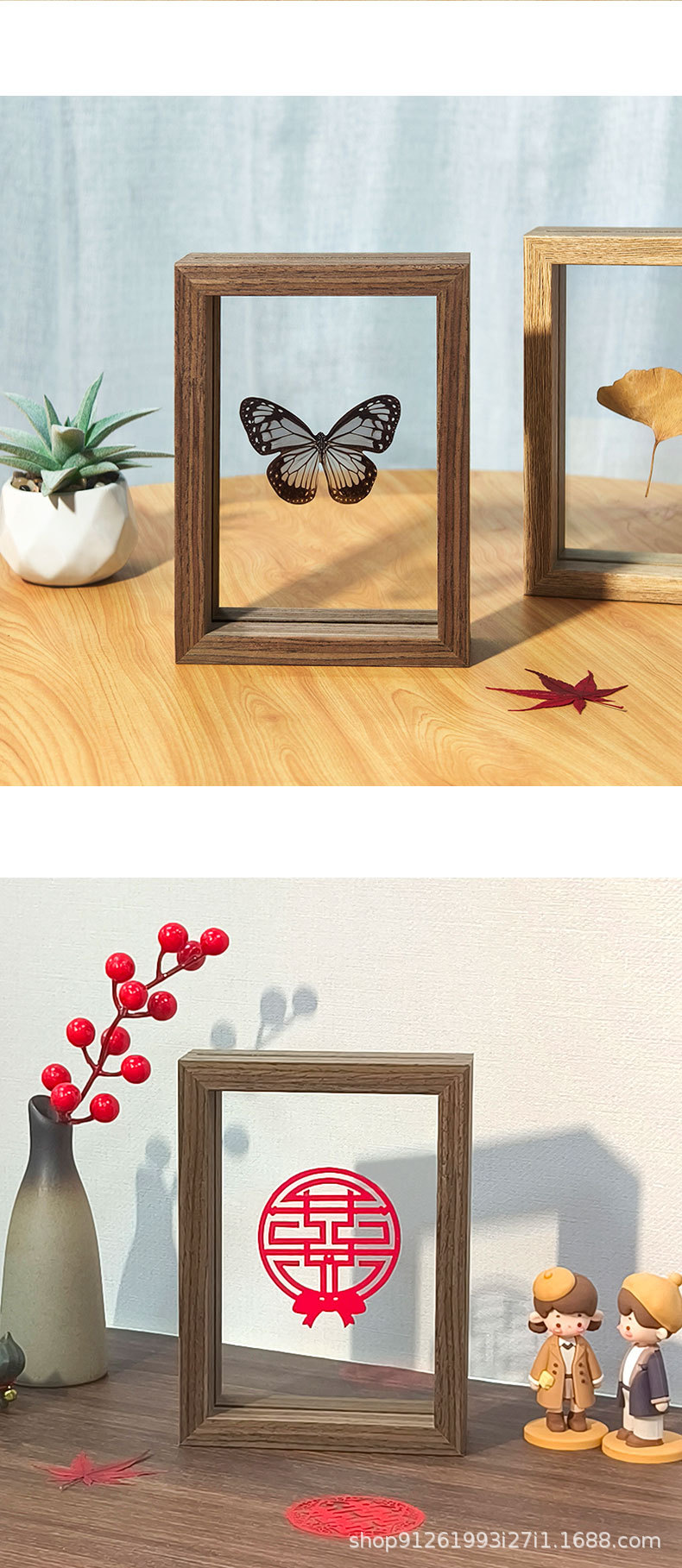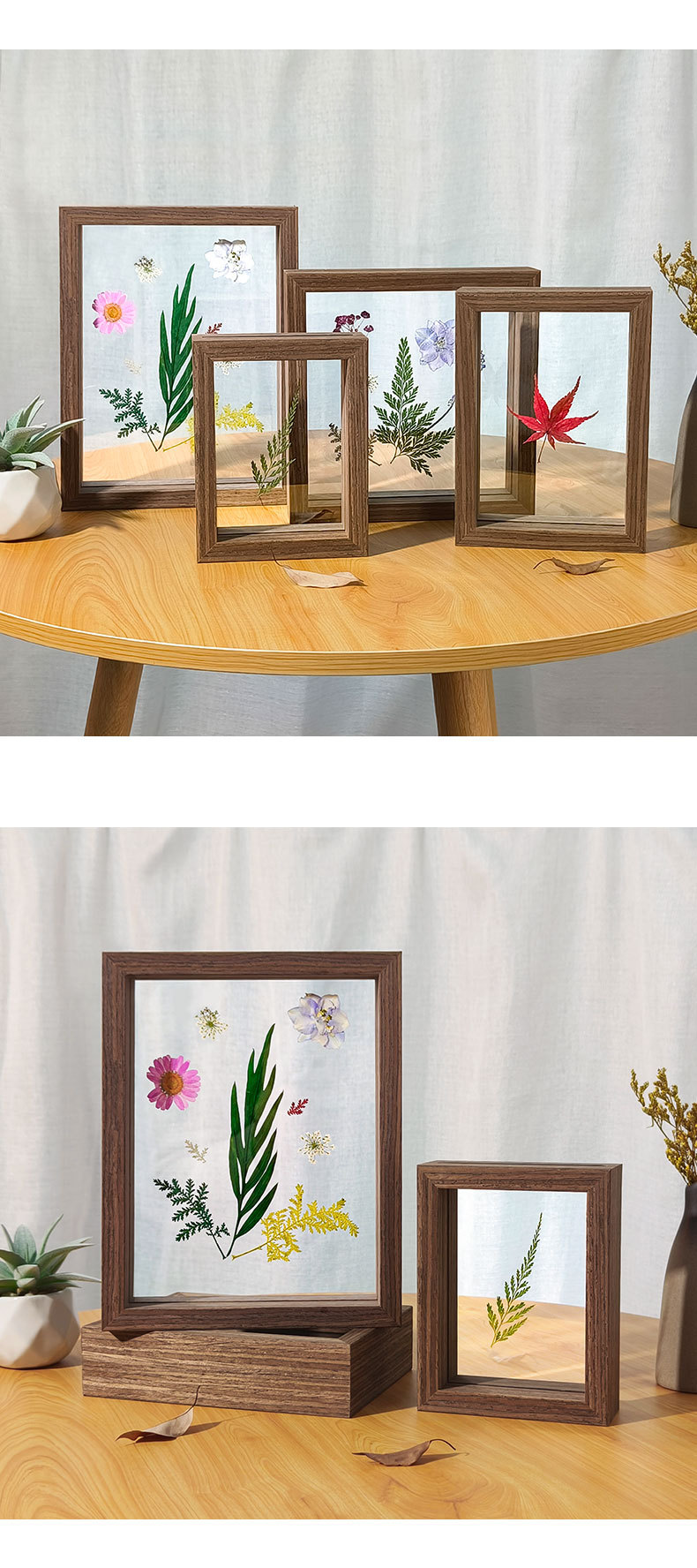 양면 투명 유리 사진 프레임 테이블 크리 에이 티브 장식 식물 잎 표본 프레임 종이 컷 사진 프레임 제조 업체 도매