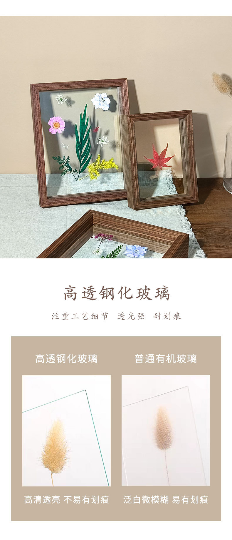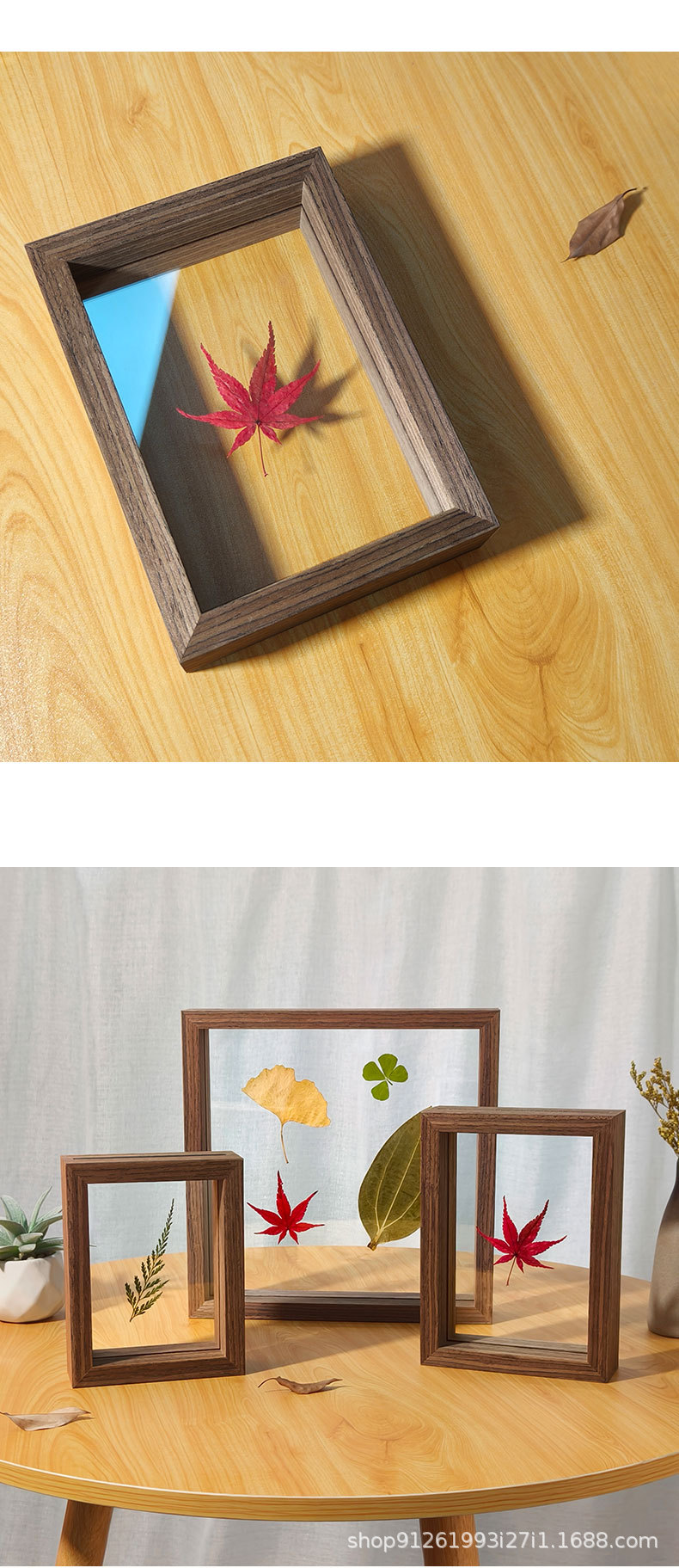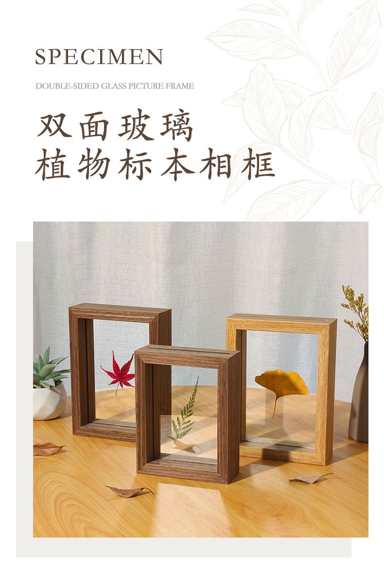 양면 투명 유리 사진 프레임 테이블 크리 에이 티브 장식 식물 잎 표본 프레임 종이 컷 사진 프레임 제조 업체 도매스토어 가기
