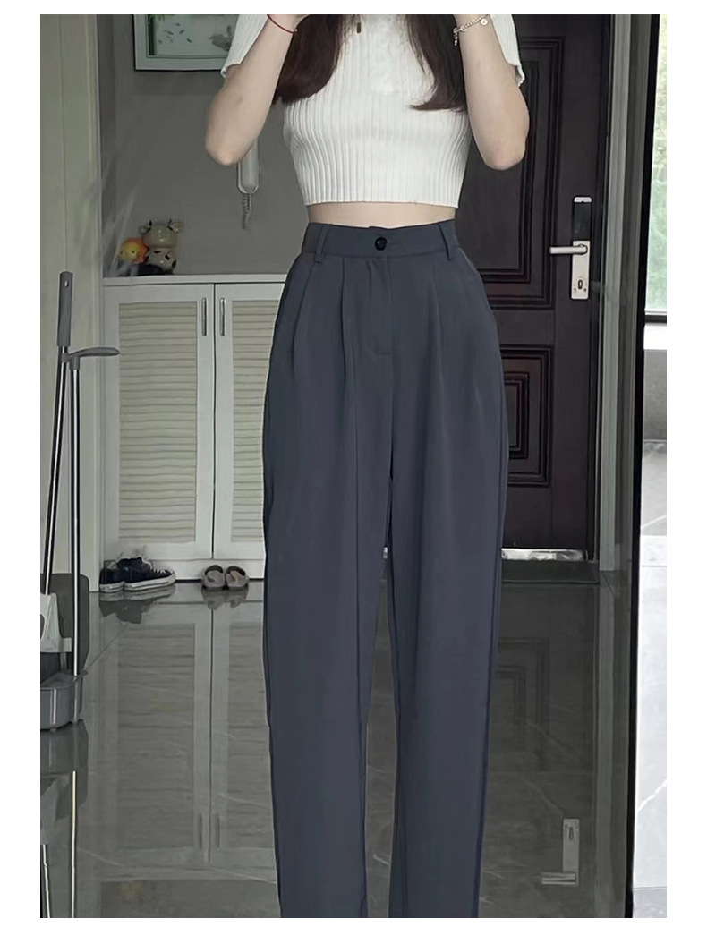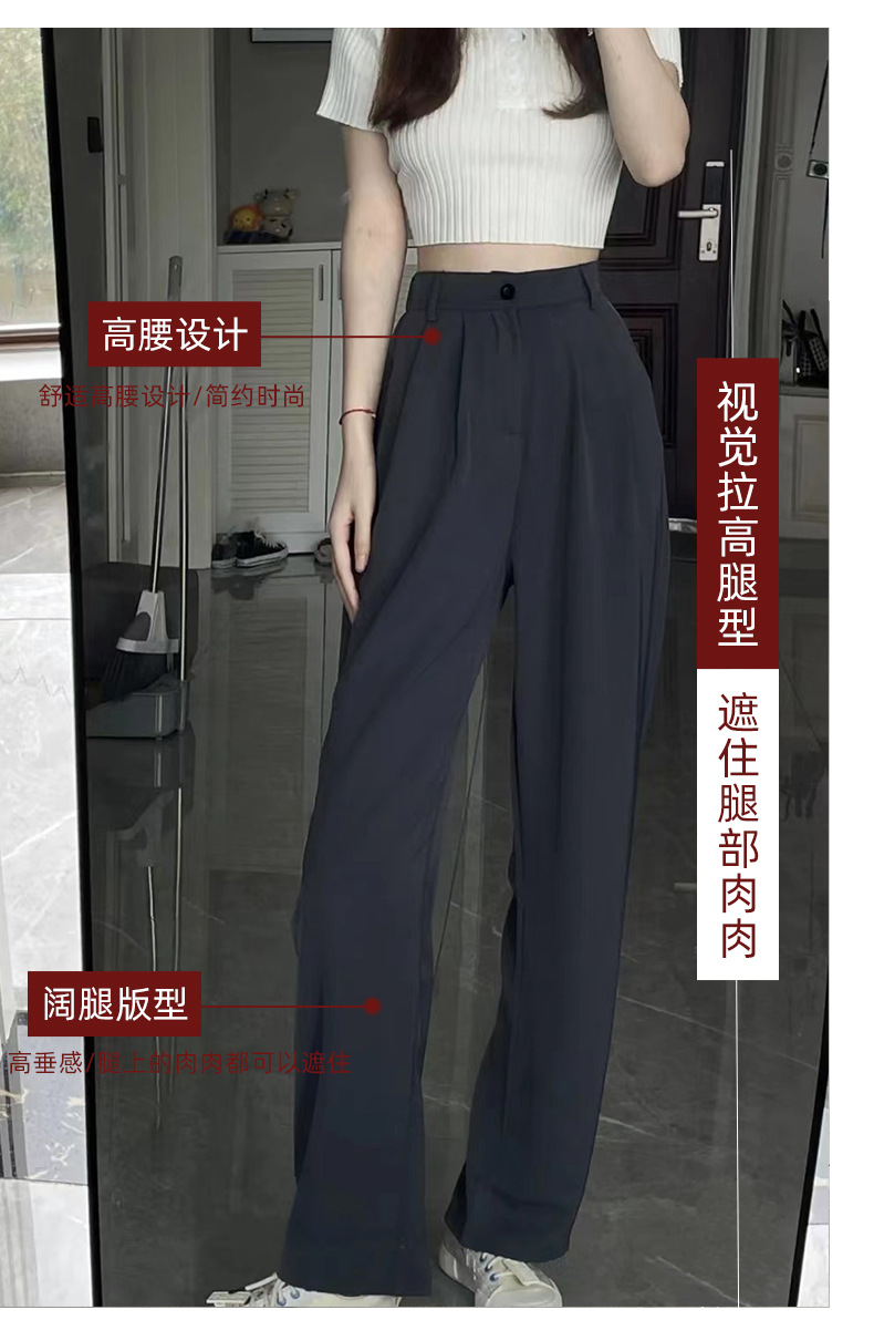 빅사이즈 캐주얼 정장 바지, 키 작은 여성용 신축성 허리 와이드 팬츠, 봄 여름용 하이웨이스트 드레이프 롱 팬츠, 싱글 버튼 스트레이트 팬츠스토어 가기