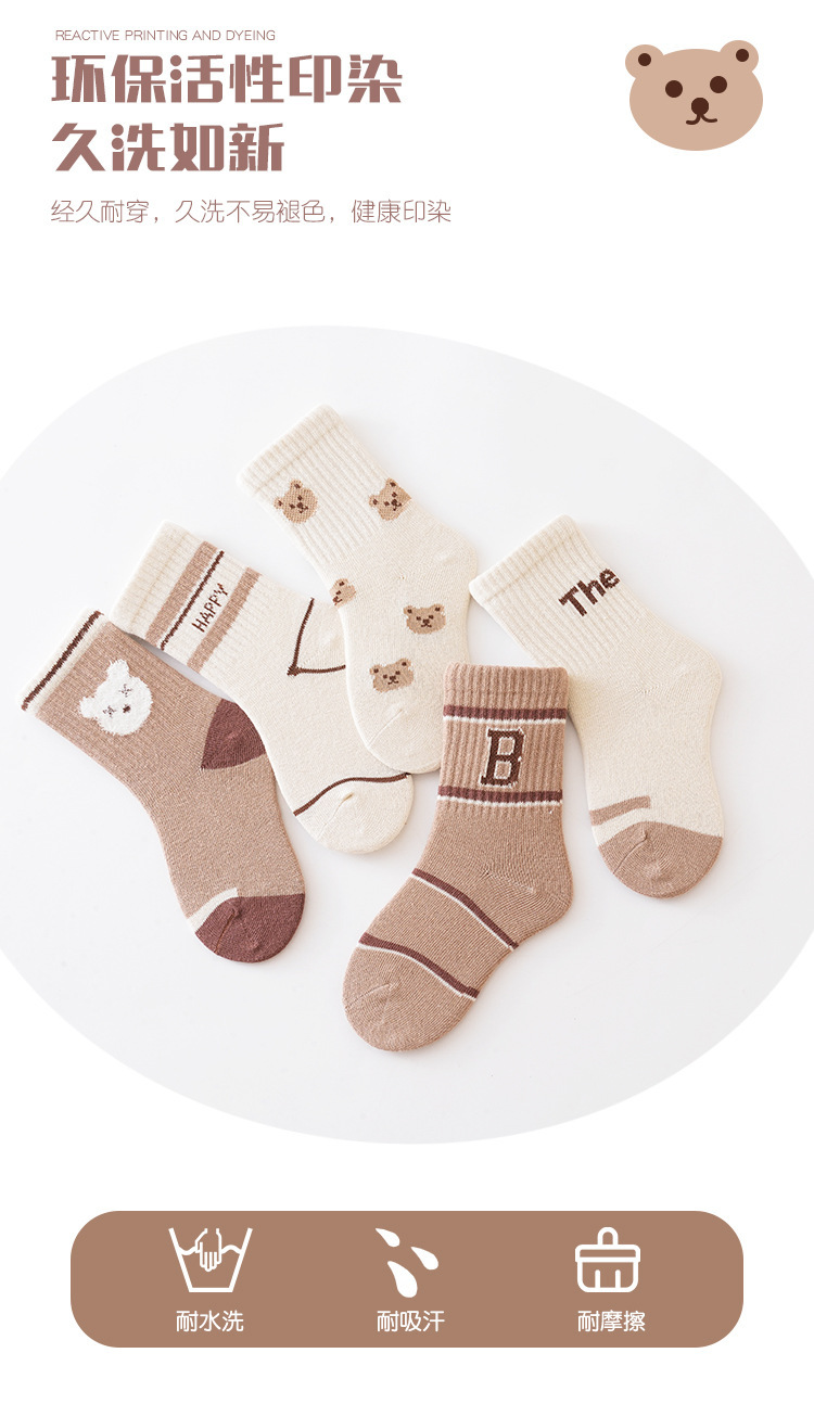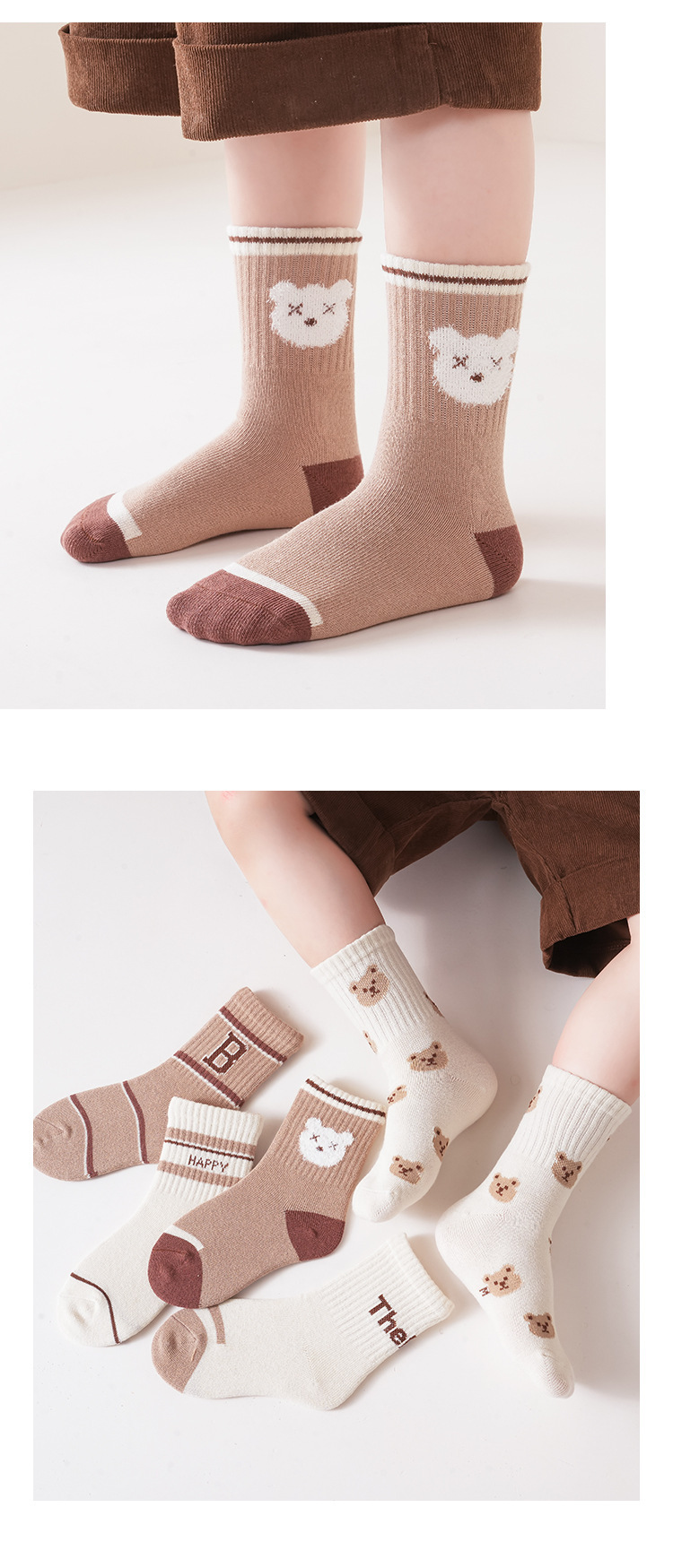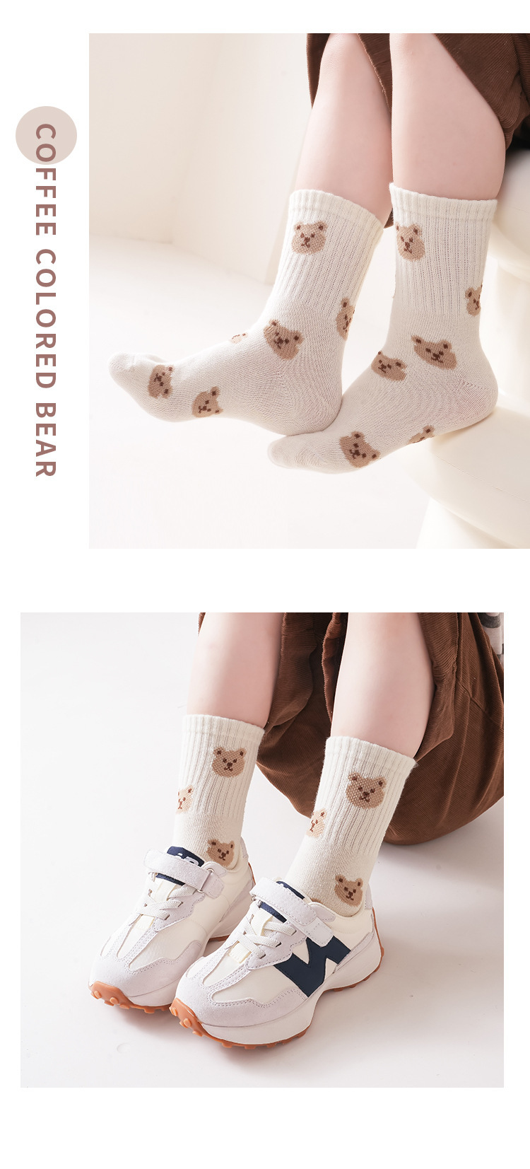 가을 겨울 신상 아동 양말 트렌디한 곰 캐릭터 하이삭스 코마사 면 유아 1-15세 중대형 어린이 도매