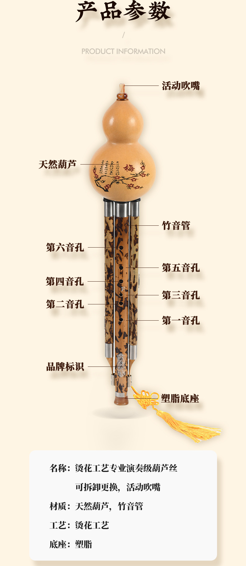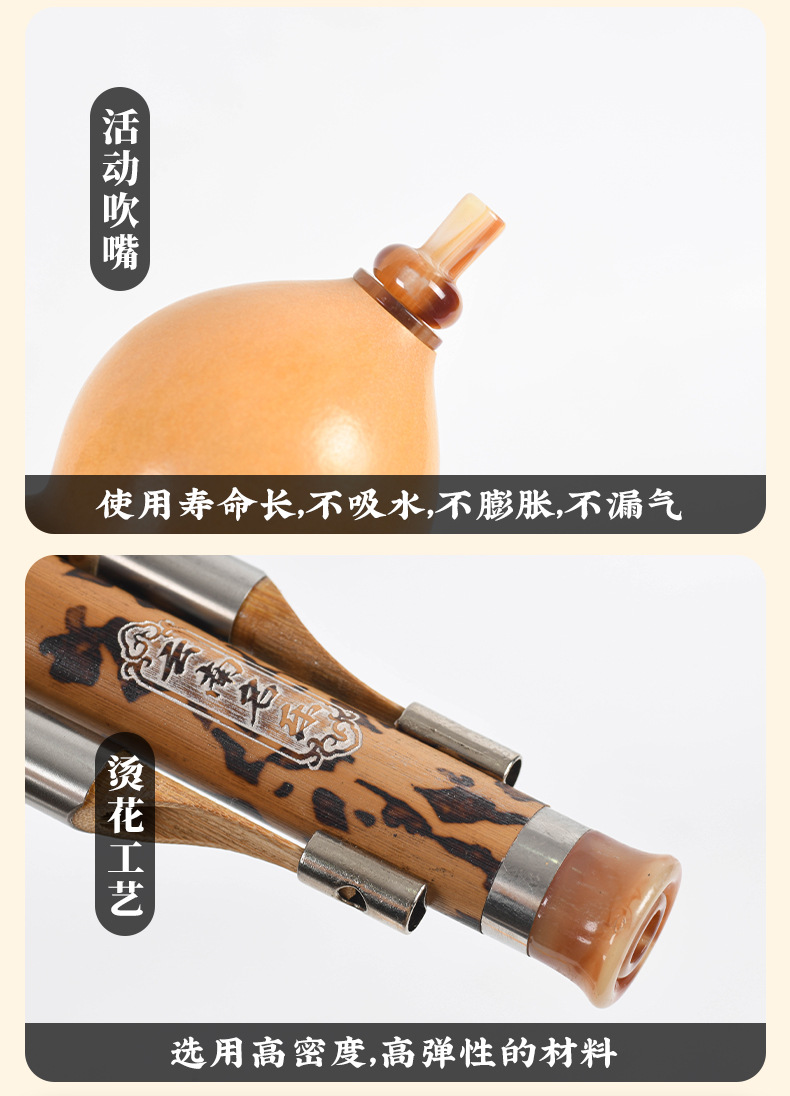 열처리 공법으로 제작된 대나무 호리병관악기, 탈부착 및 교체 가능한 활동형 마우스피스, 운남 제조업체의 연주용, 해외 인기 판매 상품스토어 가기