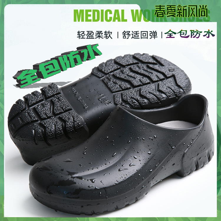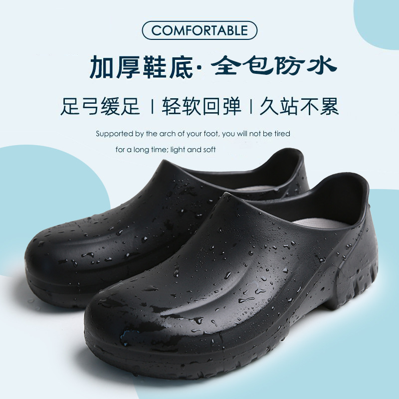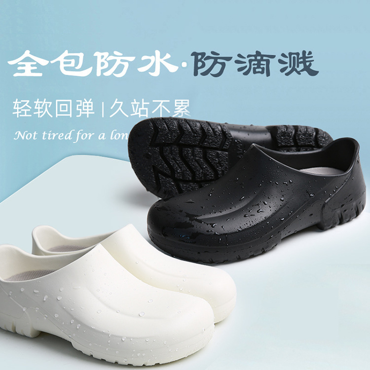 모든 항목을 포함하는 방수 경량 두꺼운 밑창 슬립온 워터 슈즈 레인 슈즈 청소 로우 튜브 캔틴 레스토랑 내유성 EVA 요리사 신발스토어 가기