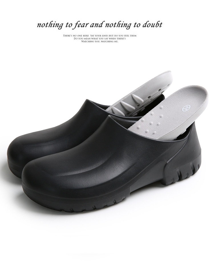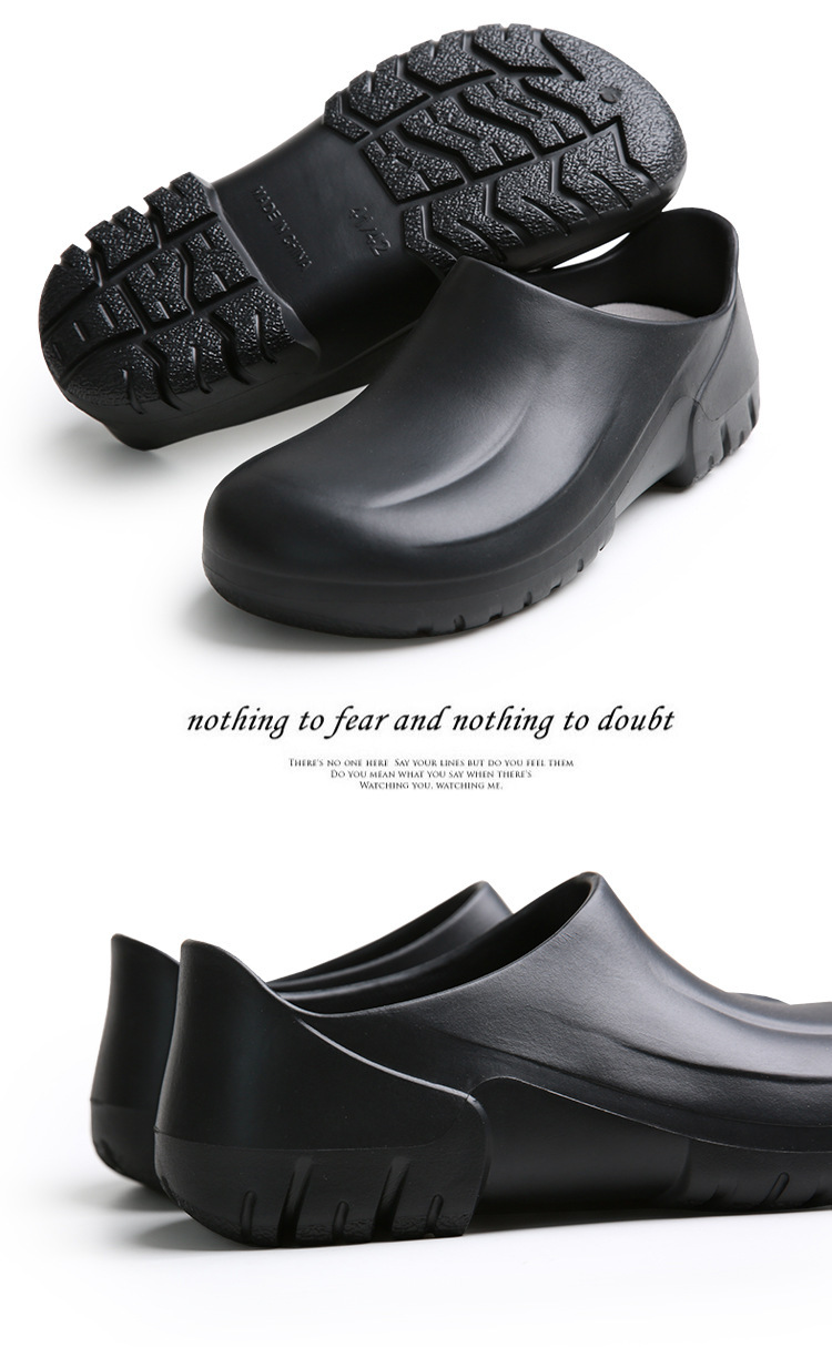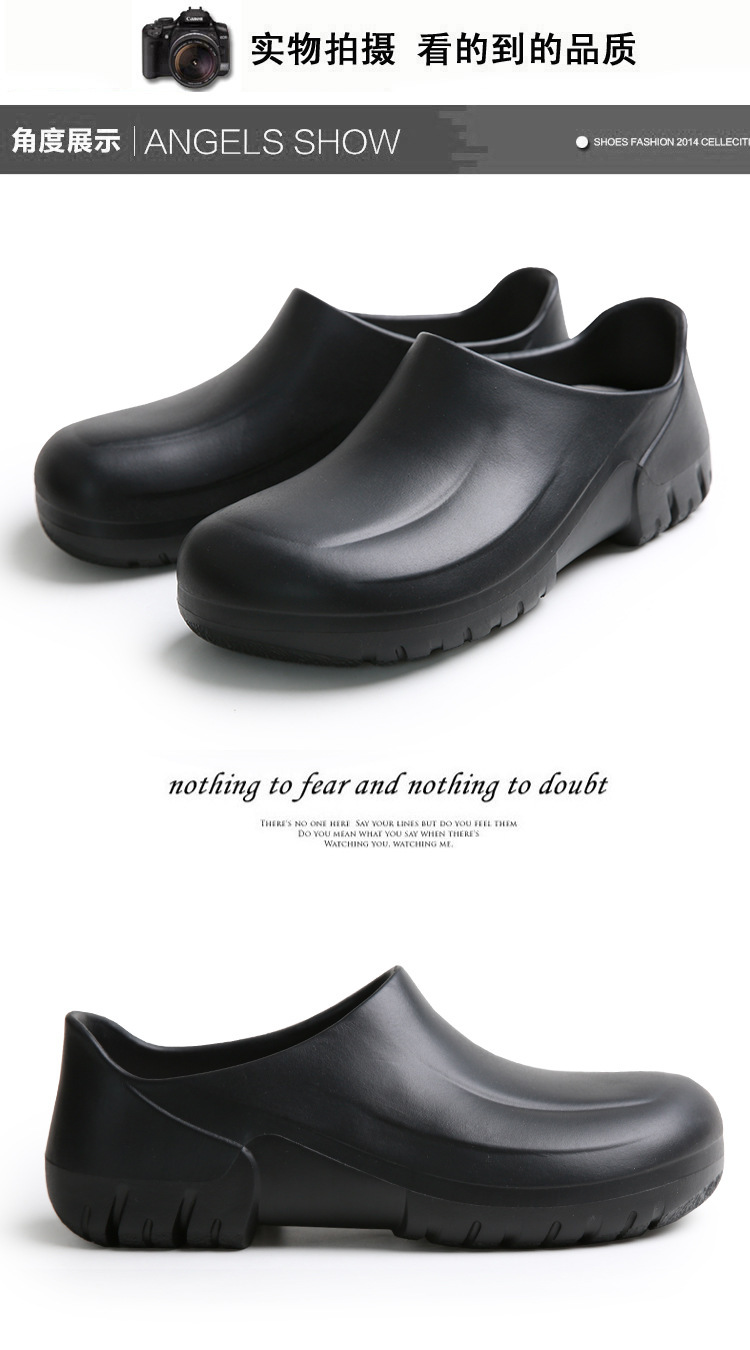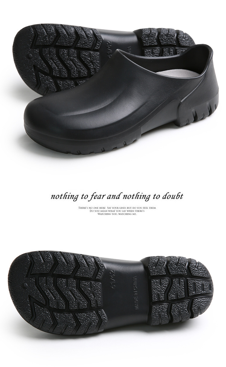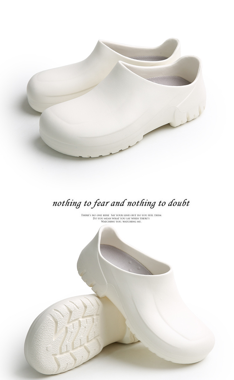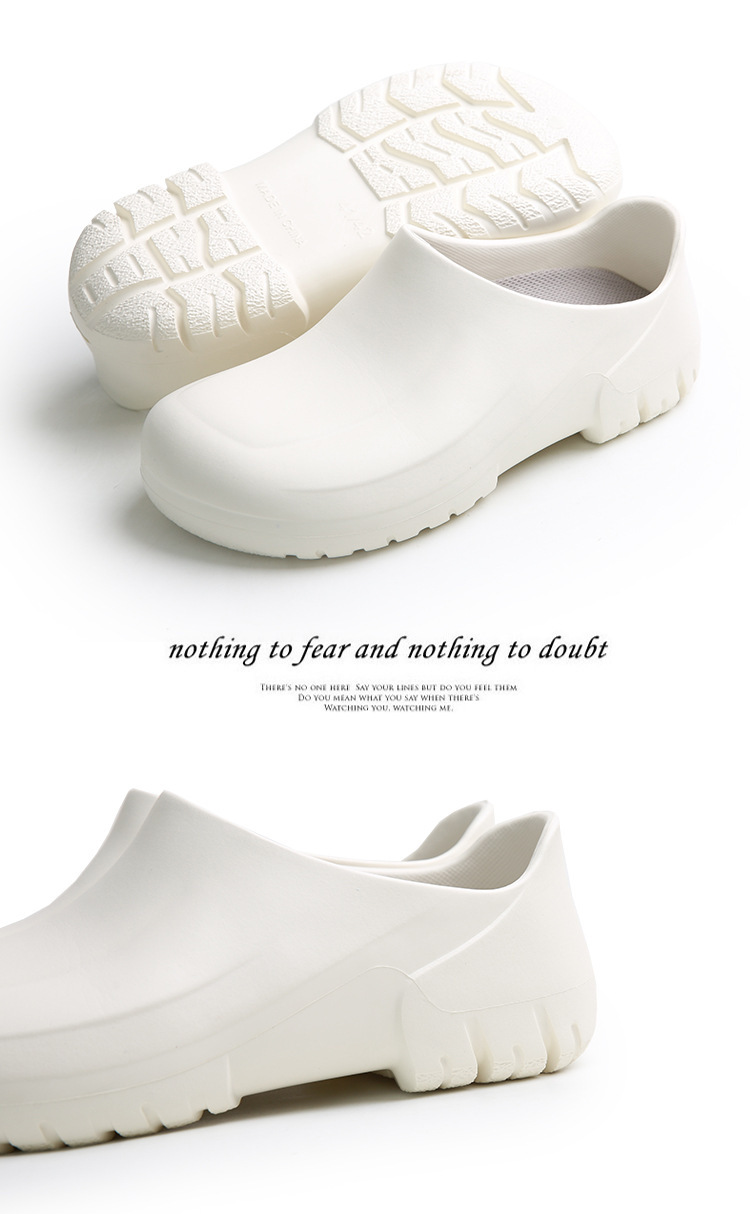 모든 항목을 포함하는 방수 경량 두꺼운 밑창 슬립온 워터 슈즈 레인 슈즈 청소 로우 튜브 캔틴 레스토랑 내유성 EVA 요리사 신발