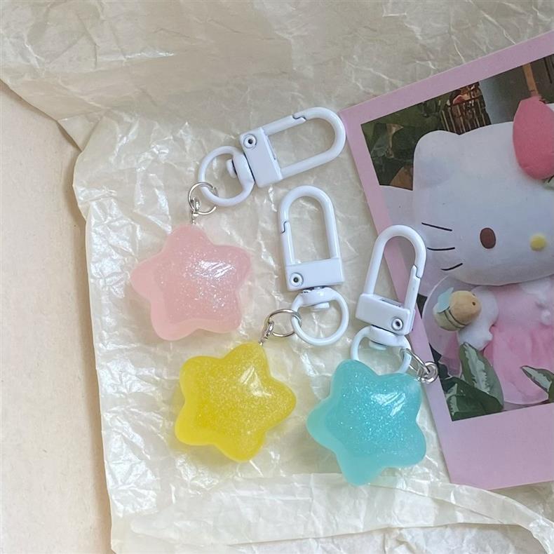젤리 빛나는 얇은 플래시 팻 스타 키 체인 핑크 소녀 달콤한 펜던트 커플 여자 친구 선물 액세서리