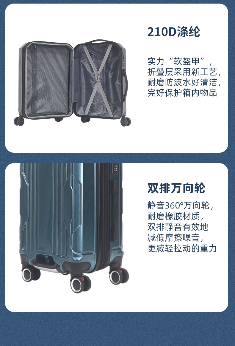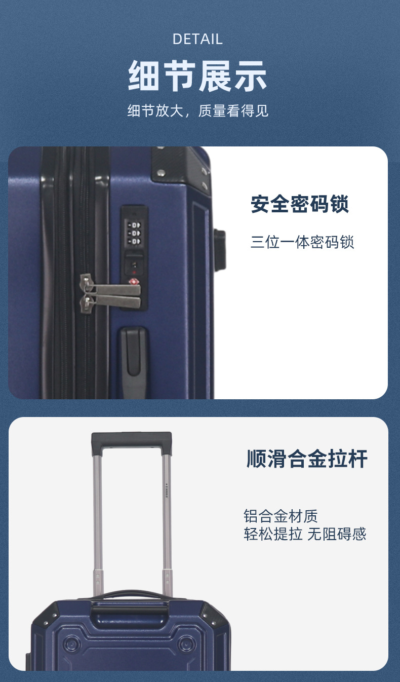양손 지퍼 트롤리 케이스 레저 여행 가벼운 운반 수하물 유니버설 휠 콤비네이션 잠금 알루미늄 프레임 트롤리 케이스