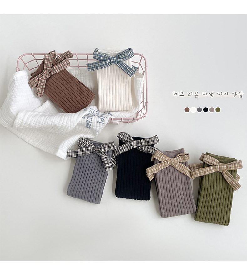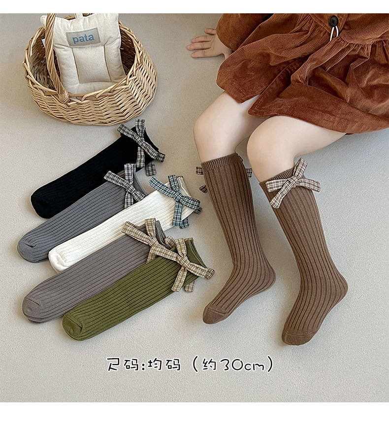 가을과 겨울 새로운 일본 단색 소녀 쌓인 양말 유행 격자 무늬 중간 길이 양말 활 커프 양말스토어 가기