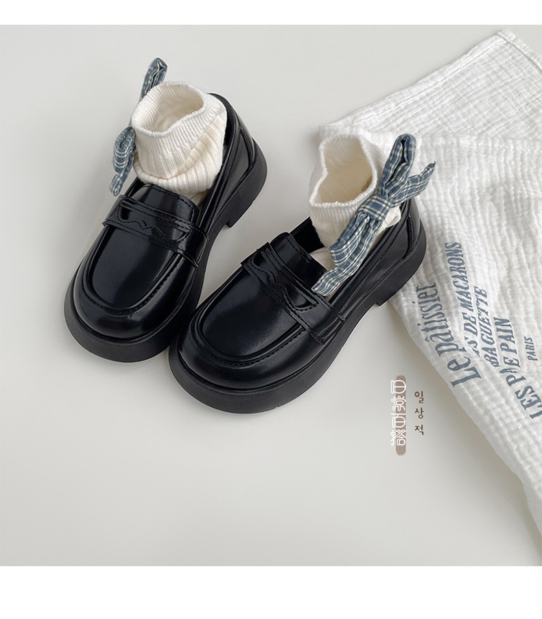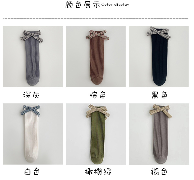 가을과 겨울 새로운 일본 단색 소녀 쌓인 양말 유행 격자 무늬 중간 길이 양말 활 커프 양말