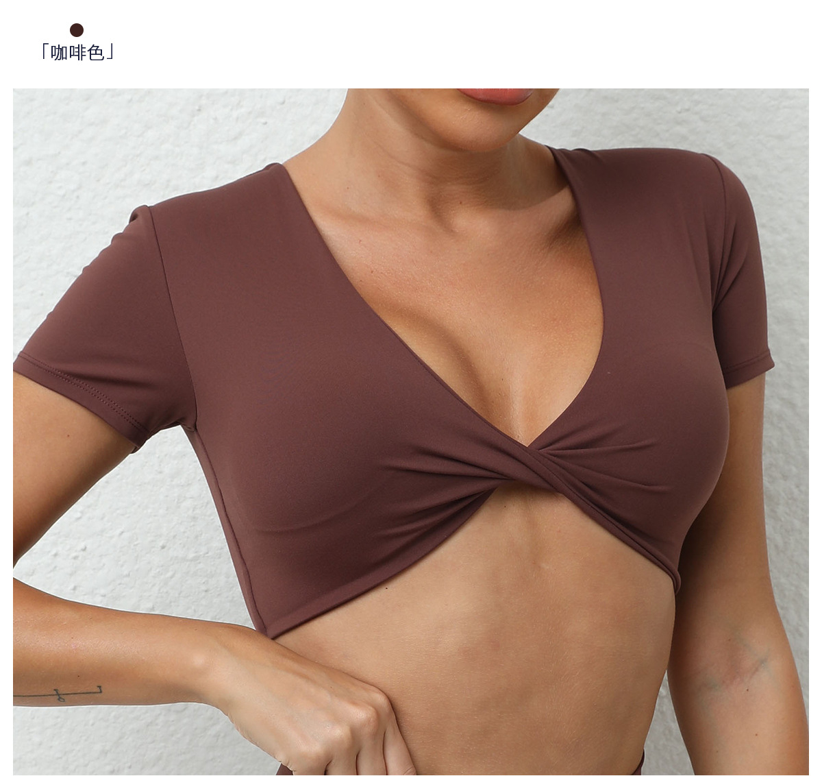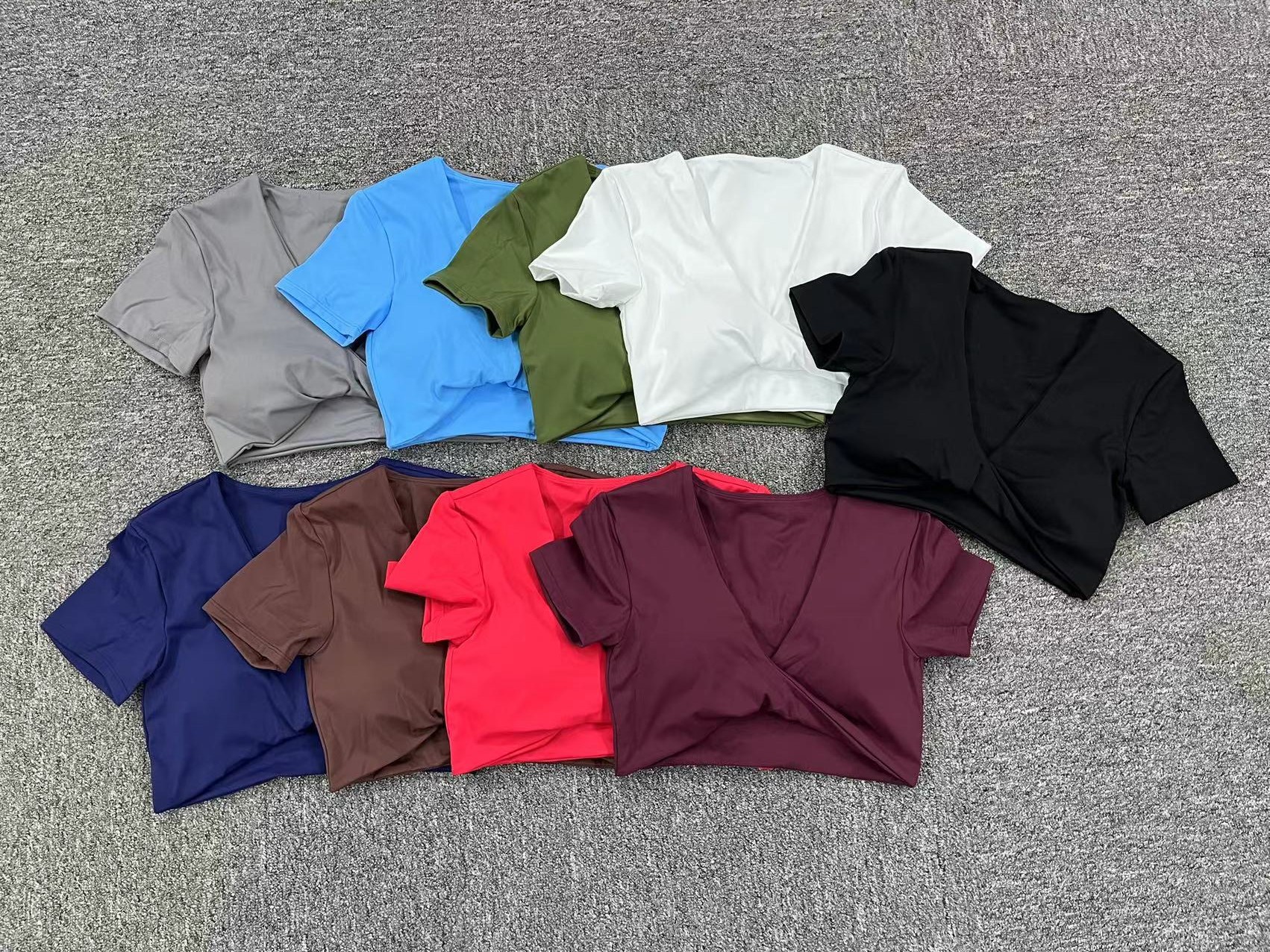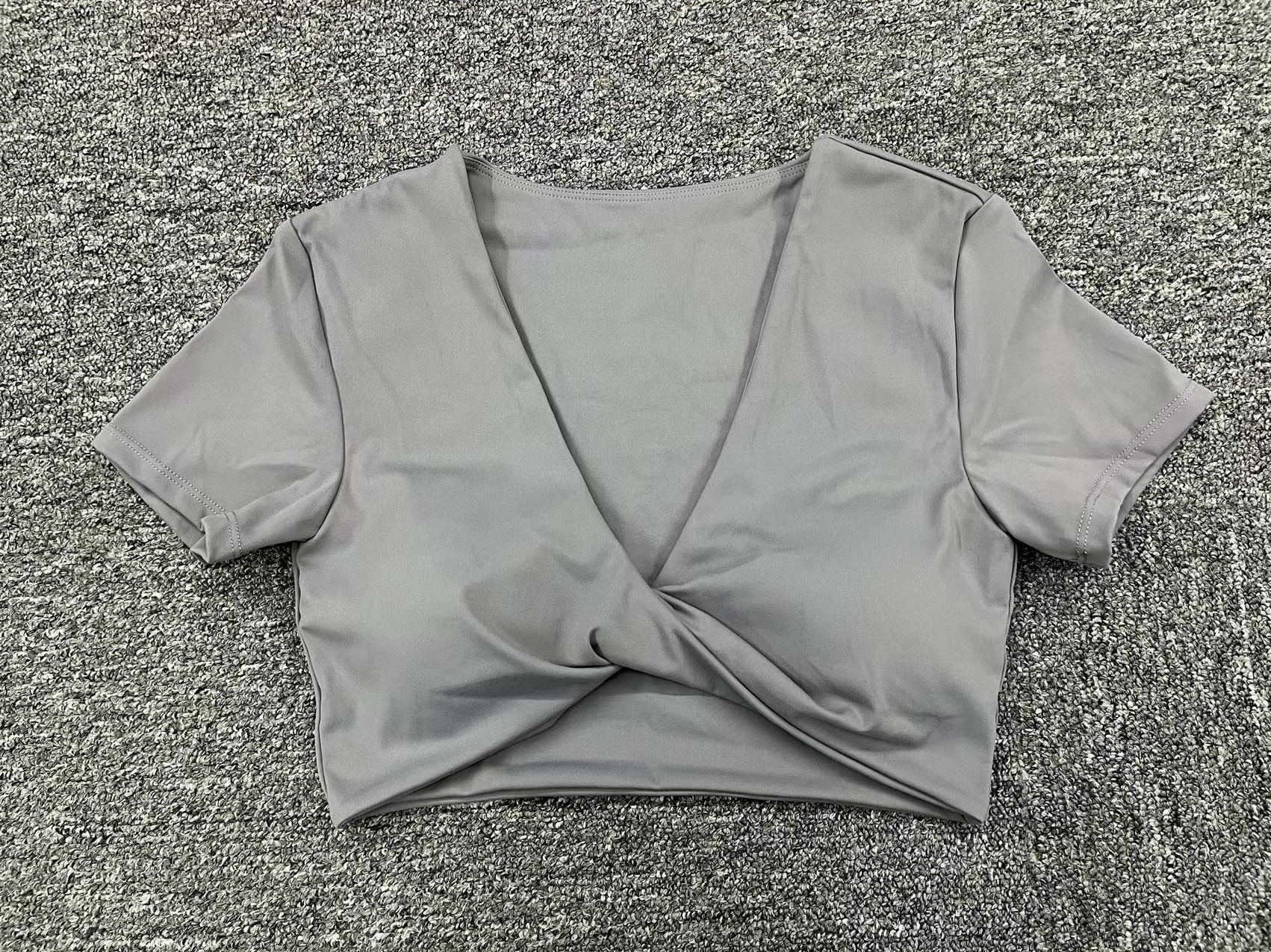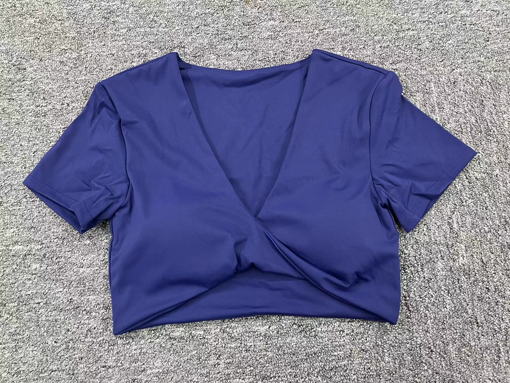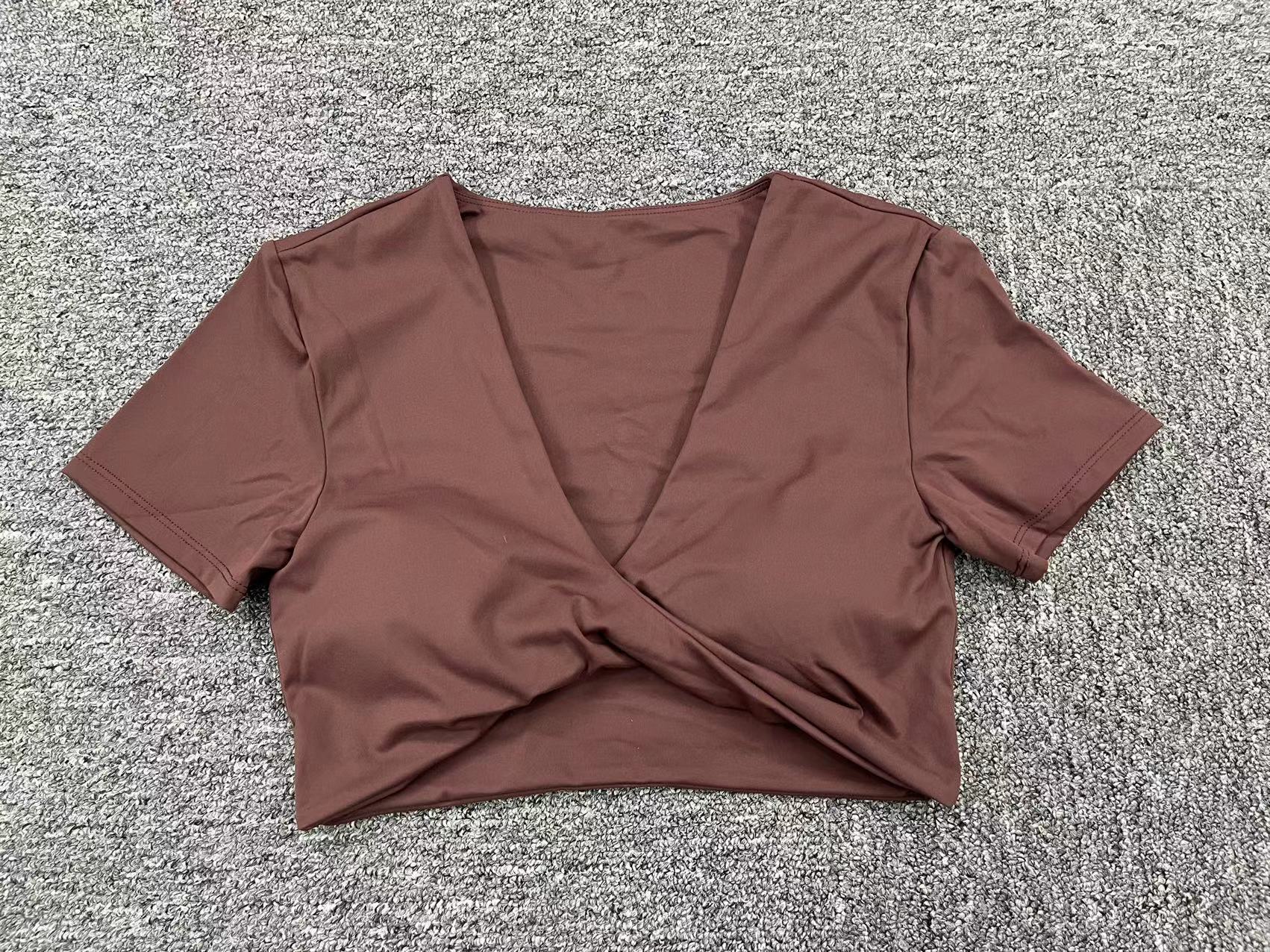 가을 요가 반팔 타이트 V넥 스포츠 반팔 티셔츠 상의 충격 방지 속건 러닝 피트니스 의류스토어 가기