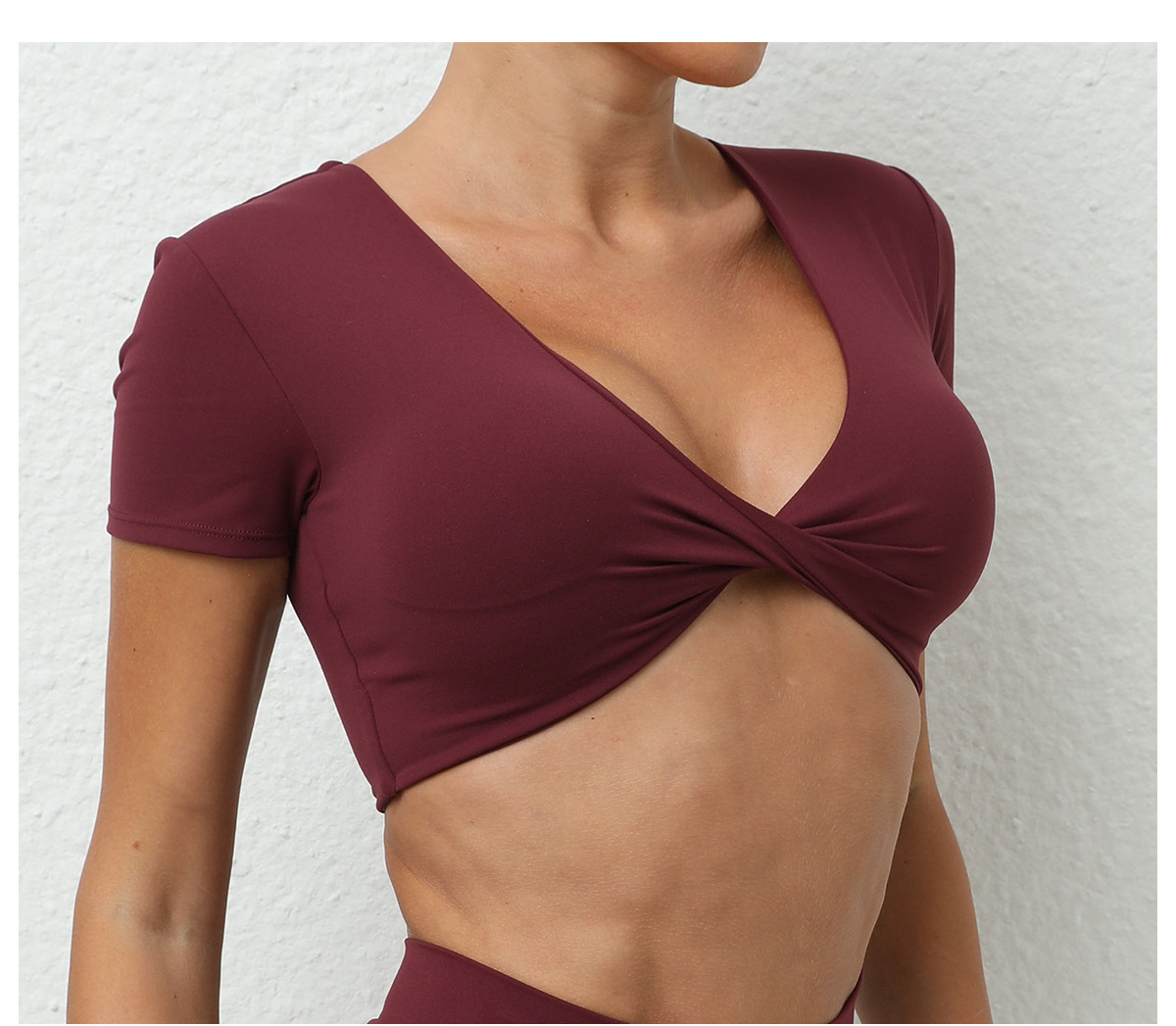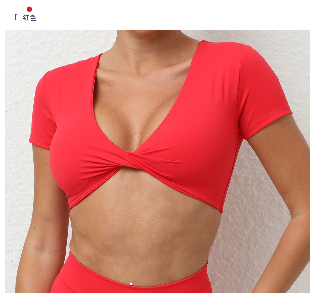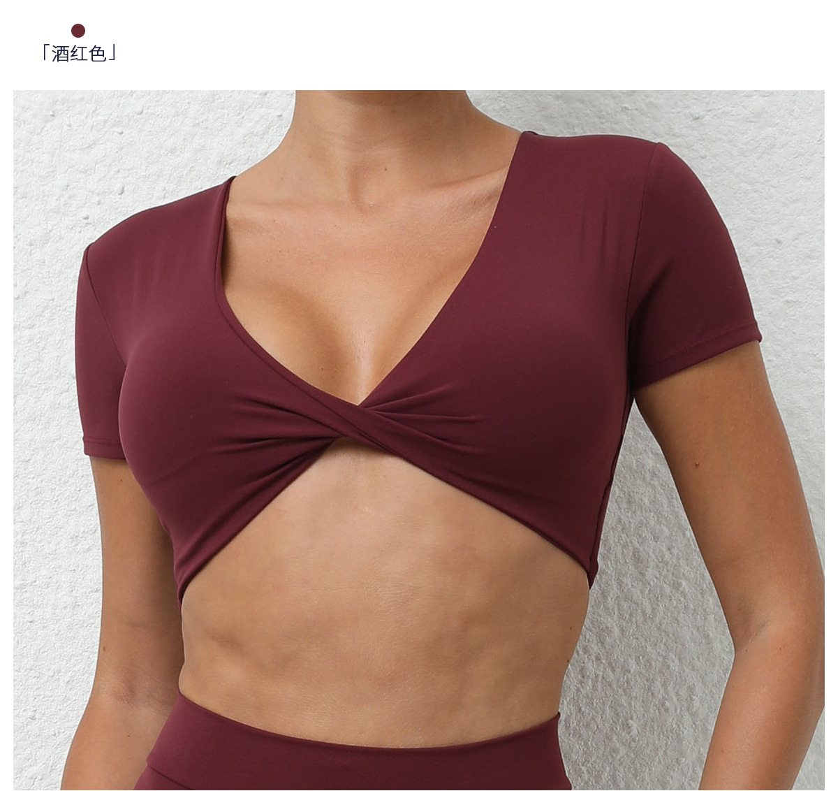 가을 요가 반팔 타이트 V넥 스포츠 반팔 티셔츠 상의 충격 방지 속건 러닝 피트니스 의류