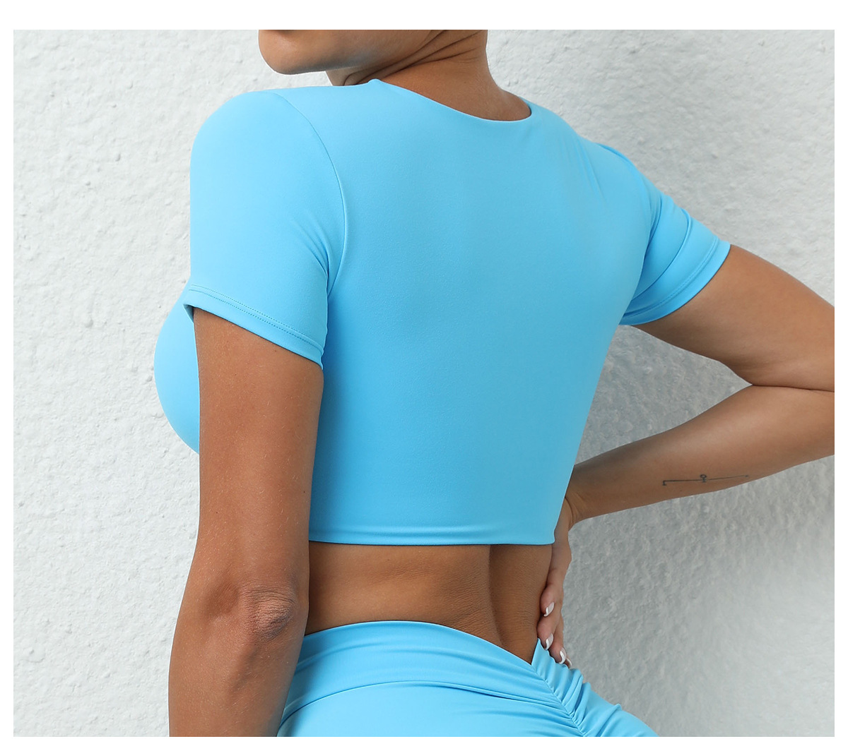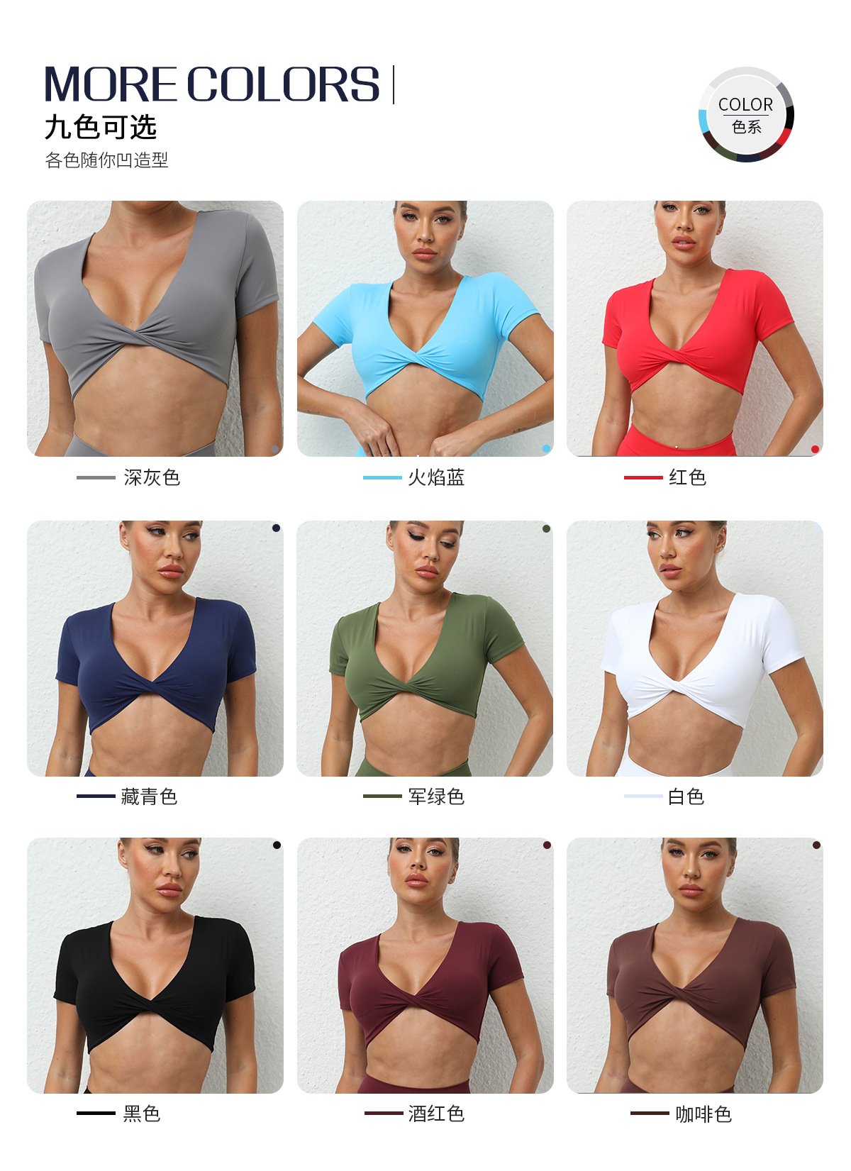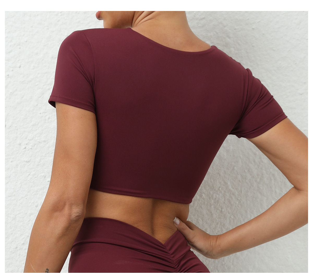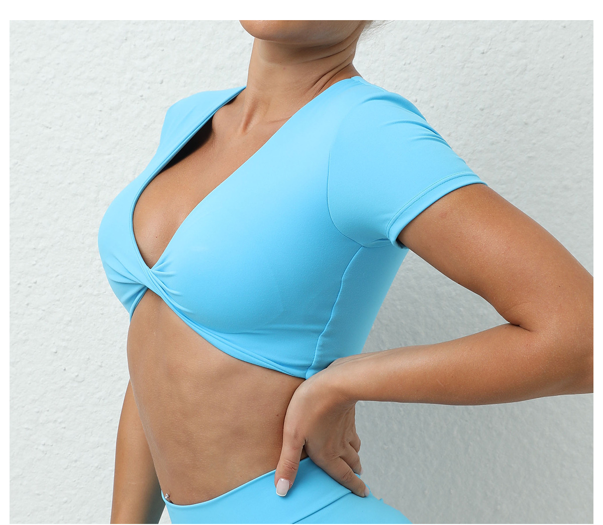 가을 요가 반팔 타이트 V넥 스포츠 반팔 티셔츠 상의 충격 방지 속건 러닝 피트니스 의류