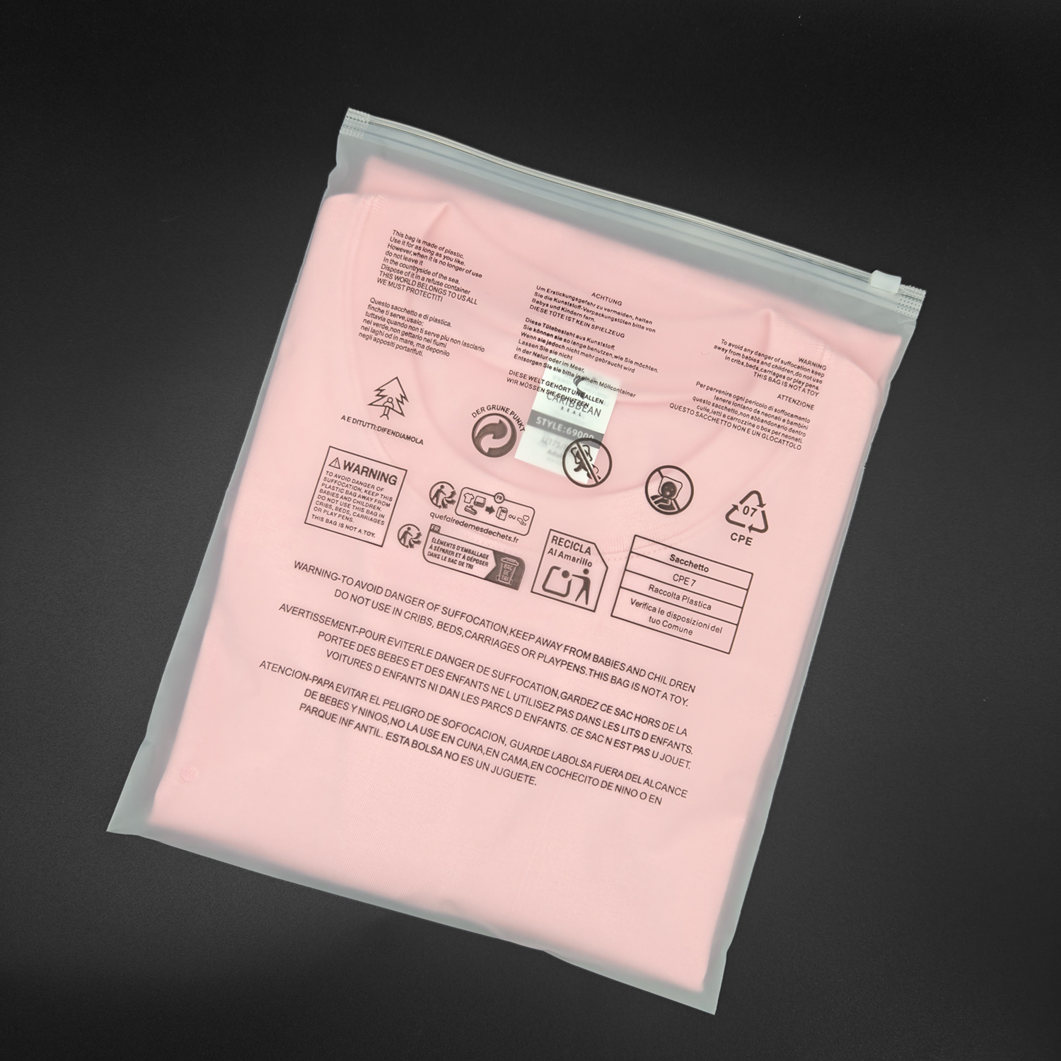 CPE 반투명 포장 백, 국경 간 경고 문구가 있는 반투명 지퍼 백, 의류 보관 백, EVA 반투명 지퍼 지퍼백스토어 가기