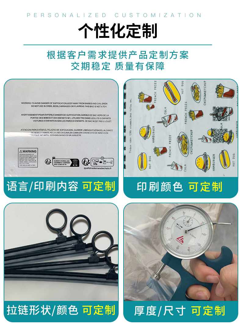 Temu跨境警示语包装袋 CPE磨砂拉链袋 衣服收纳PE透明拉链服装袋