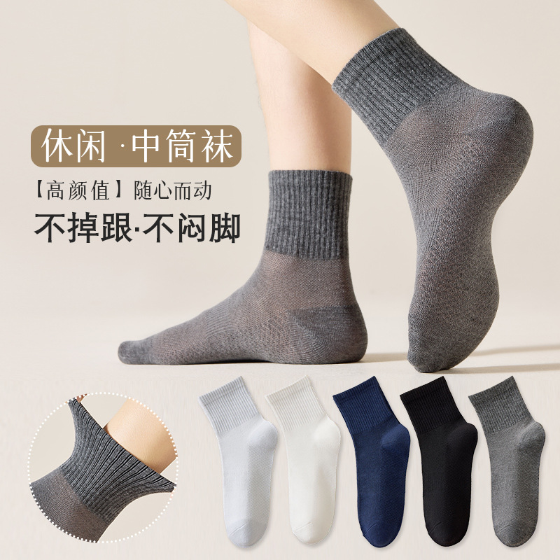 중간 튜브 양말 남성 봄과 가을 부드러운 땀 흡수성 통기성 탈취제 캐주얼 비즈니스 중년 남성 양말 도매