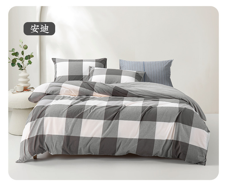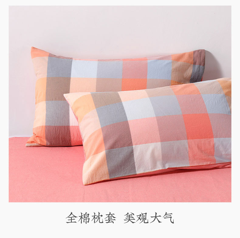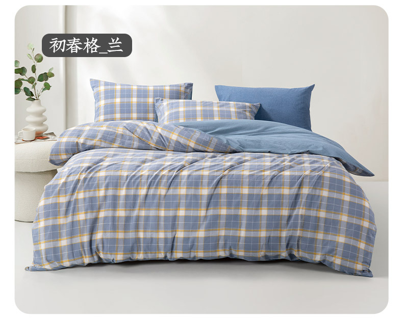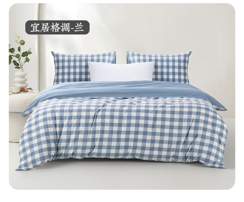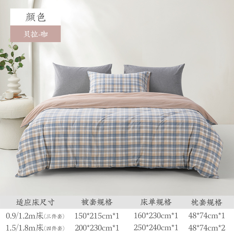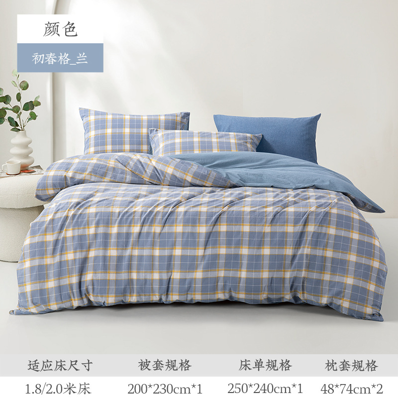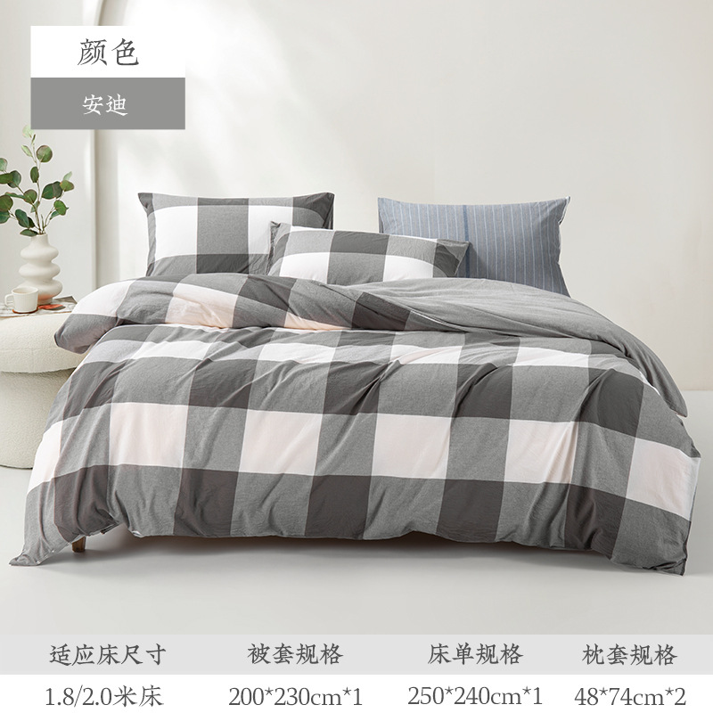 Yuanmeng 가정용 섬유 침대 시트 4 종 세트 순면 세척 면 이불 커버 심플 격자 무늬 대학생 기숙사 침대 4 종 세트스토어 가기