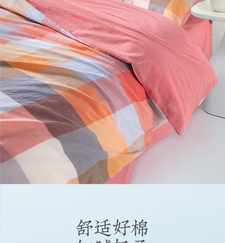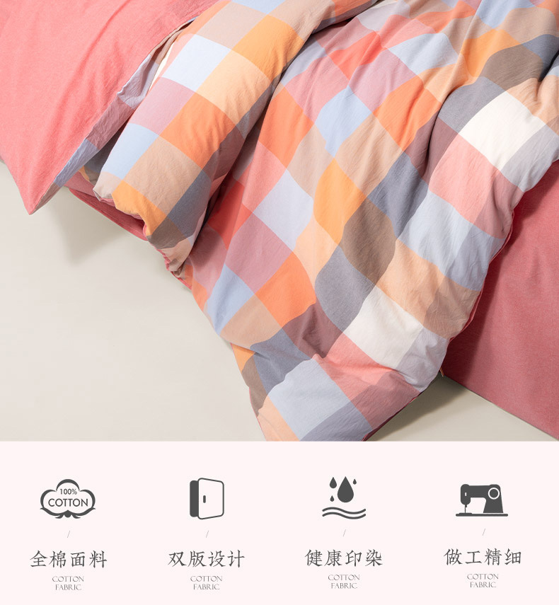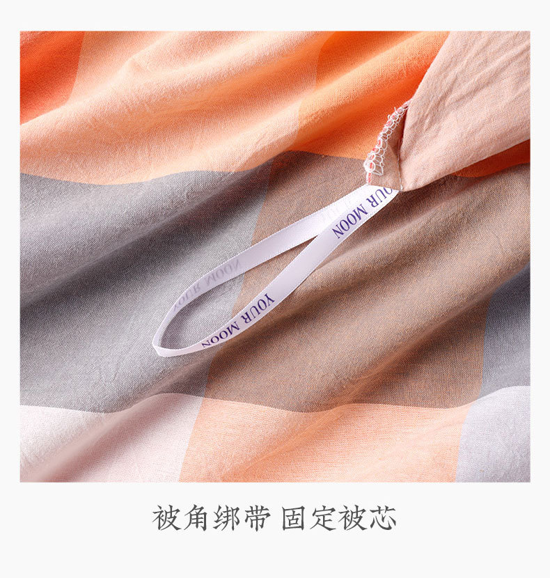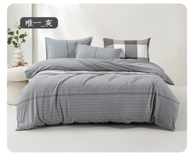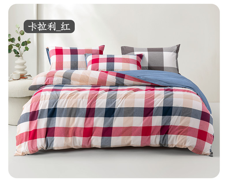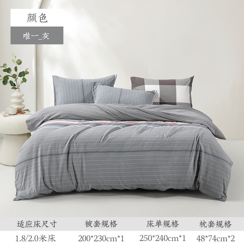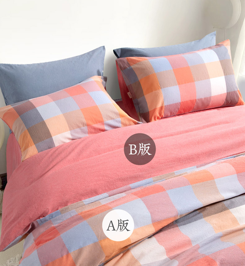 Yuanmeng 가정용 섬유 침대 시트 4 종 세트 순면 세척 면 이불 커버 심플 격자 무늬 대학생 기숙사 침대 4 종 세트스토어 가기