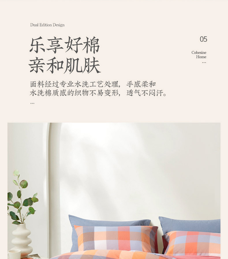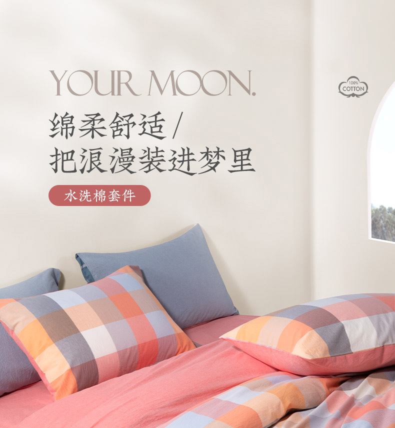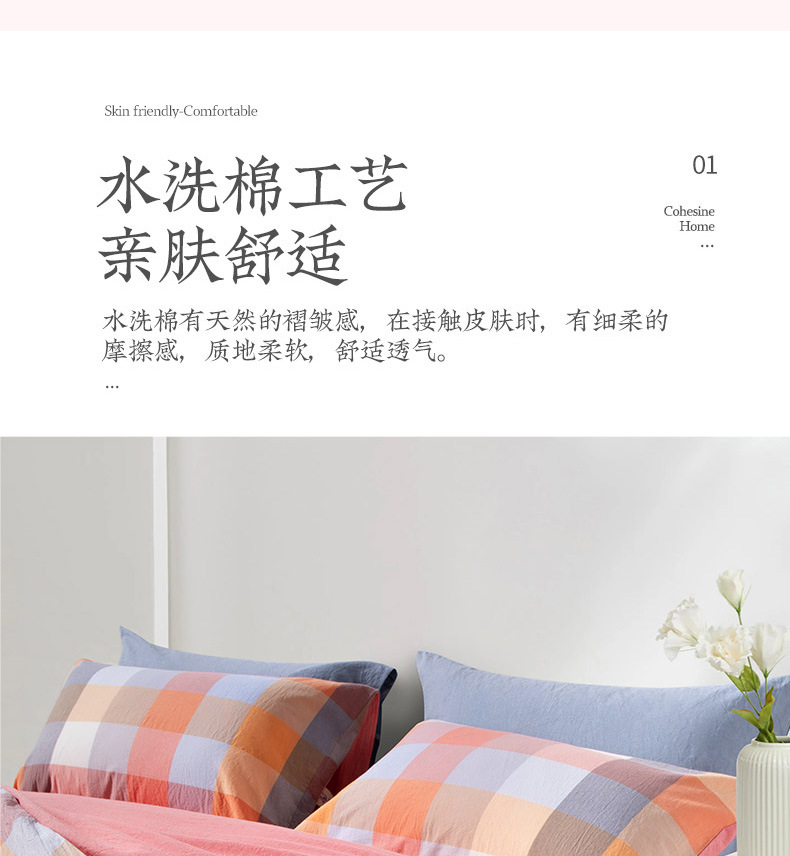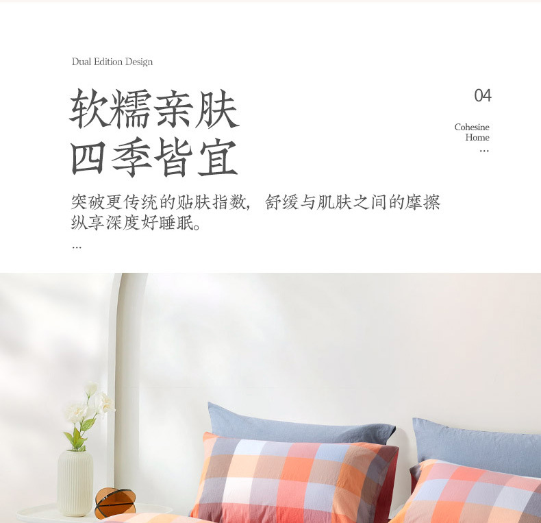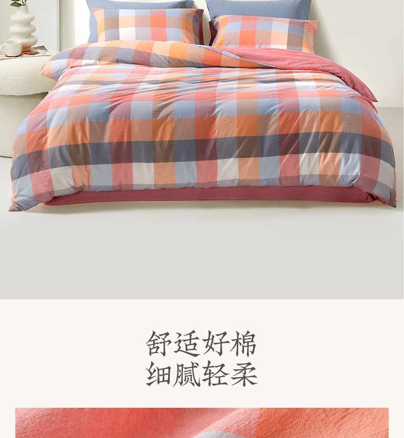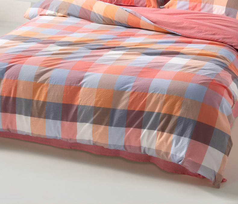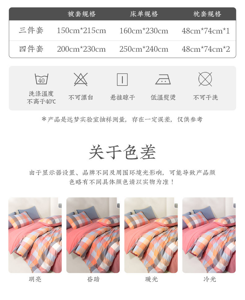 Yuanmeng 가정용 섬유 침대 시트 4 종 세트 순면 세척 면 이불 커버 심플 격자 무늬 대학생 기숙사 침대 4 종 세트스토어 가기