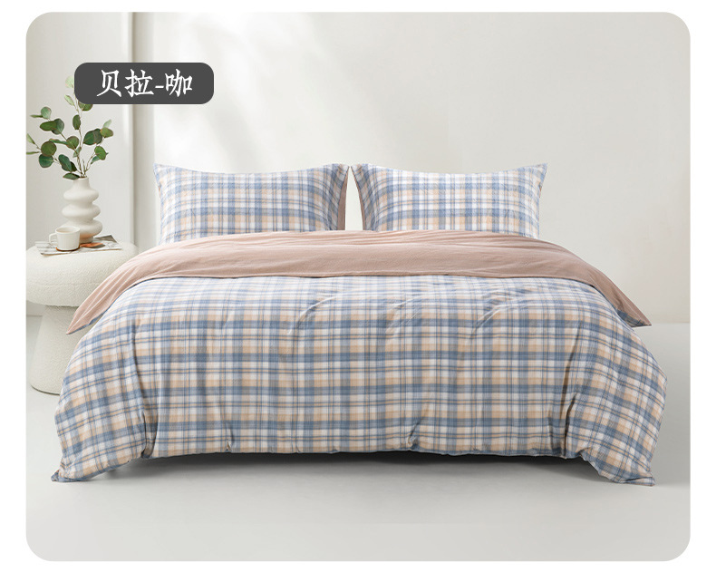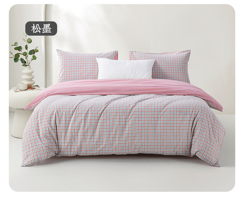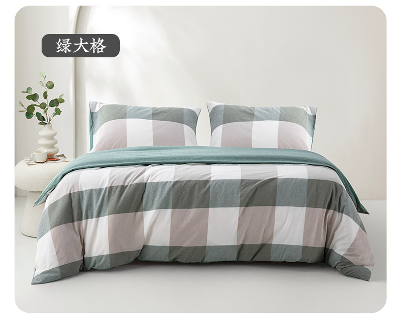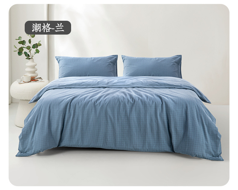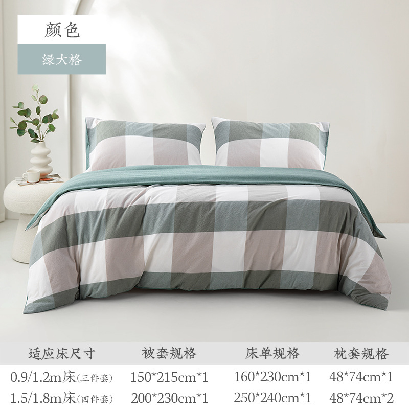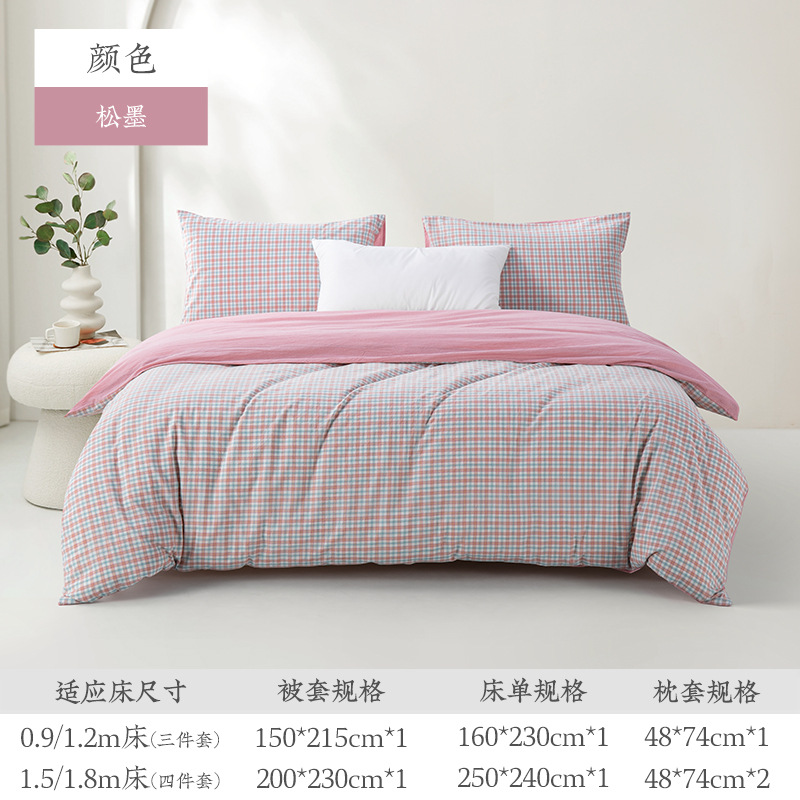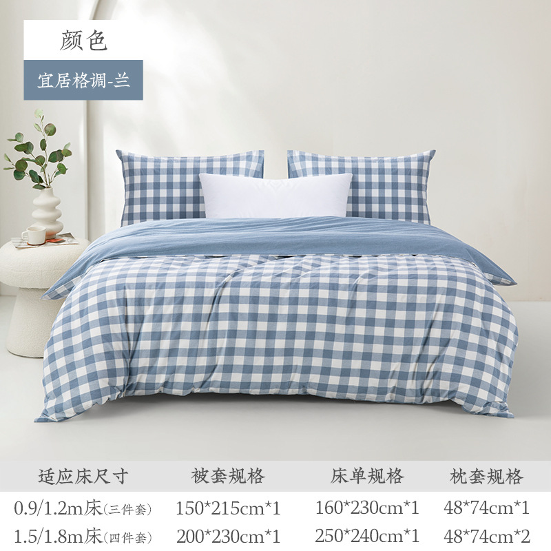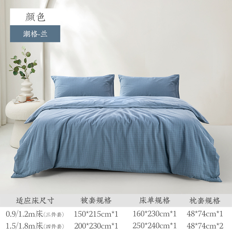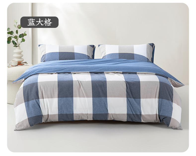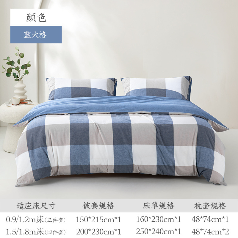 Yuanmeng 가정용 섬유 침대 시트 4 종 세트 순면 세척 면 이불 커버 심플 격자 무늬 대학생 기숙사 침대 4 종 세트