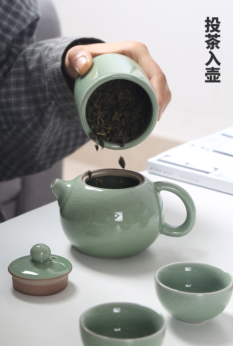 휴대용 Ru 가마 여행 차 세트 세트 한 냄비 네 컵 야외 상자 쿵푸 차 냄비 차 컵 간단한 익스프레스 컵