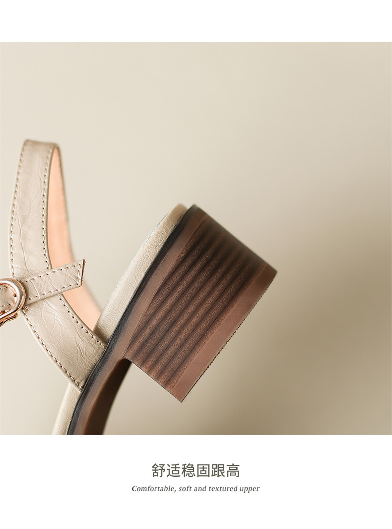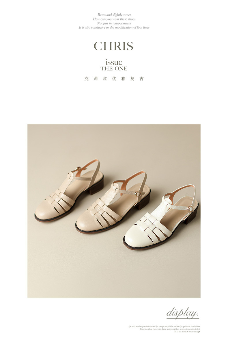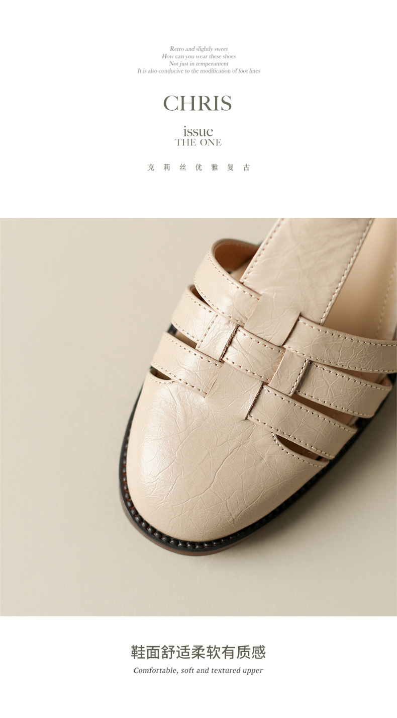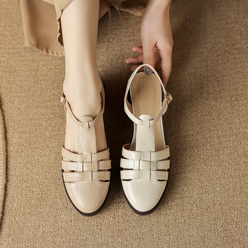 Yue Laiya ~ 빈티지 짠 Baotou 로마 샌들 여성용 두꺼운 굽 2023 여름 새로운 정품 가죽 미들 힐 돼지 케이지 신발