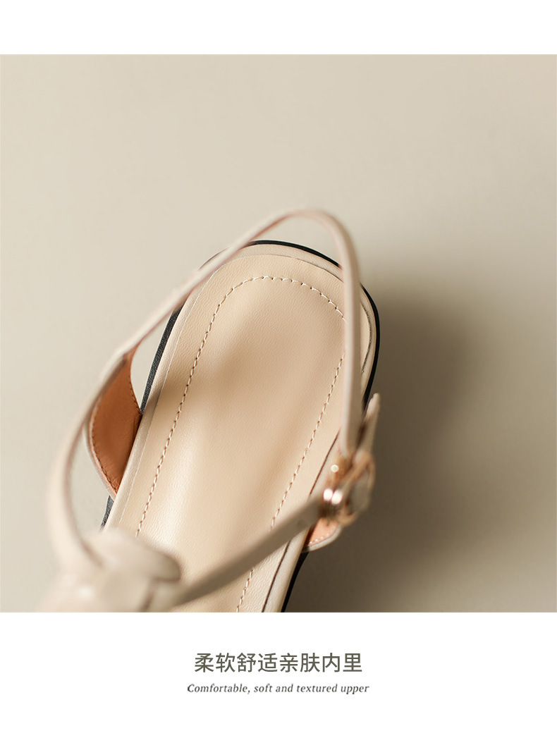 Yue Laiya ~ 빈티지 짠 Baotou 로마 샌들 여성용 두꺼운 굽 2023 여름 새로운 정품 가죽 미들 힐 돼지 케이지 신발스토어 가기