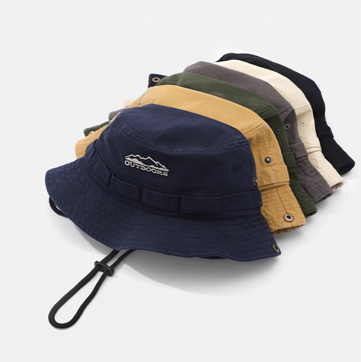 남성과 여성을위한 일본식 복고풍 야외 졸라매는 끈 하이킹 모자 봄과 여름 태양 보호 태양 모자 캐주얼 모든 경기 서양 어부 모자스토어 가기